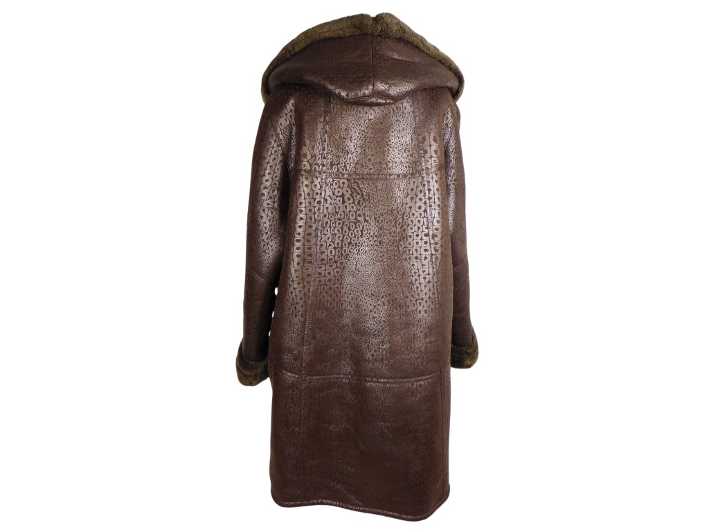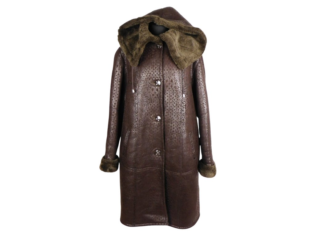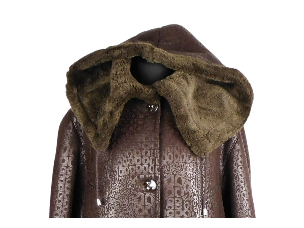 Dámský dlouhý hnědý kabát s kapucí FENG