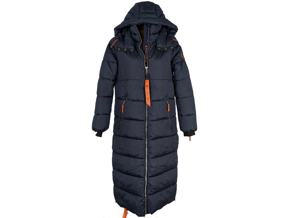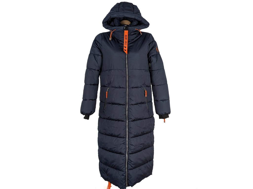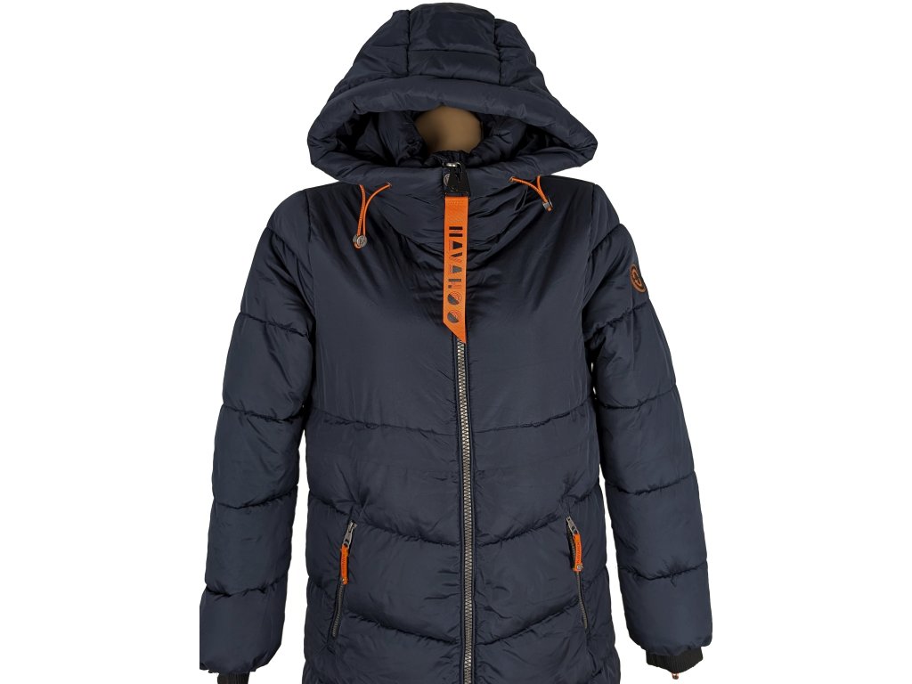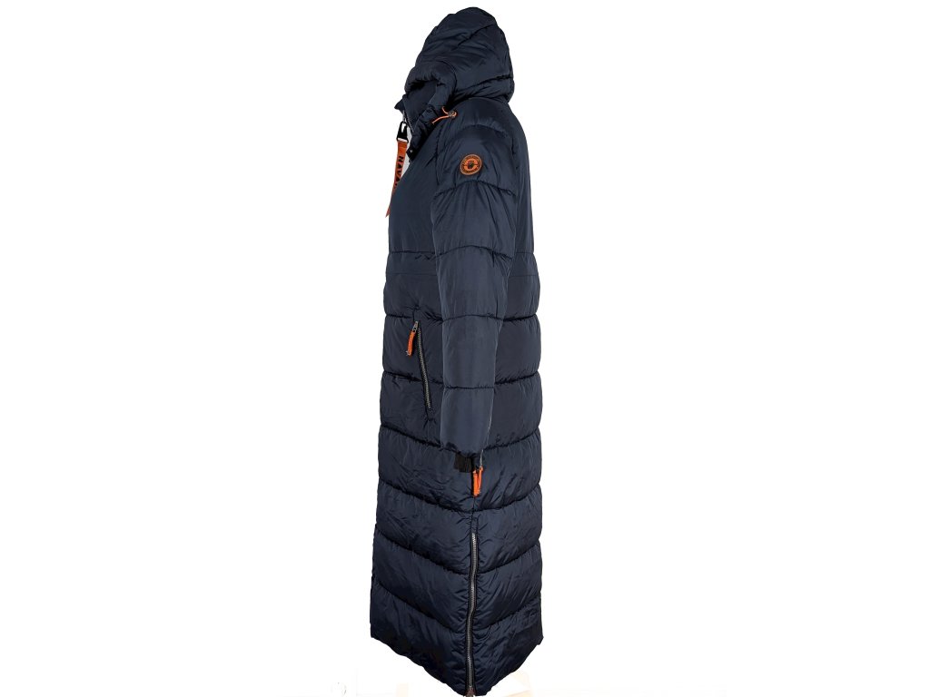 Dámský dlouhý modrý prošívaný kabát s kapucí NAVAHOO M
