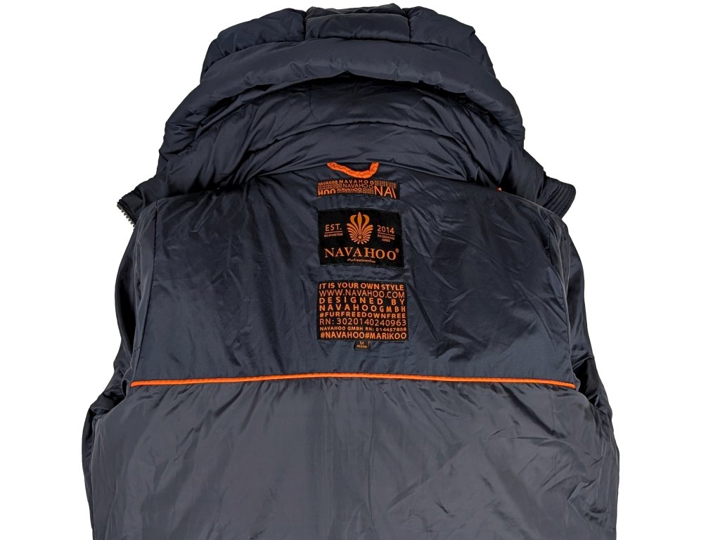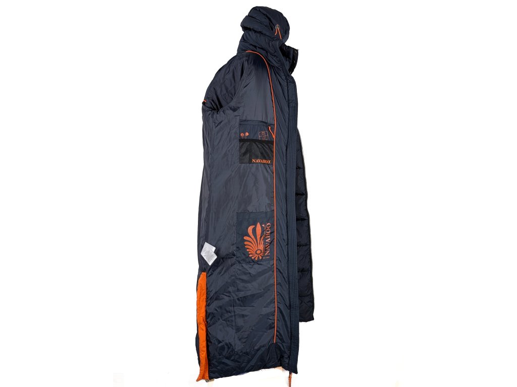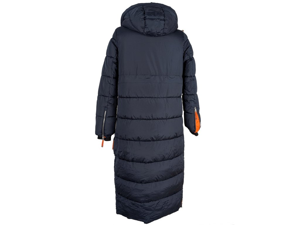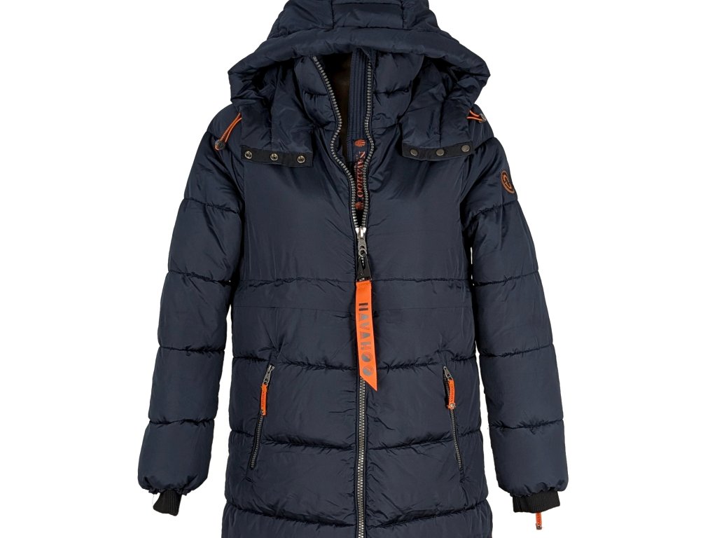 Dámský dlouhý modrý prošívaný kabát s kapucí NAVAHOO M