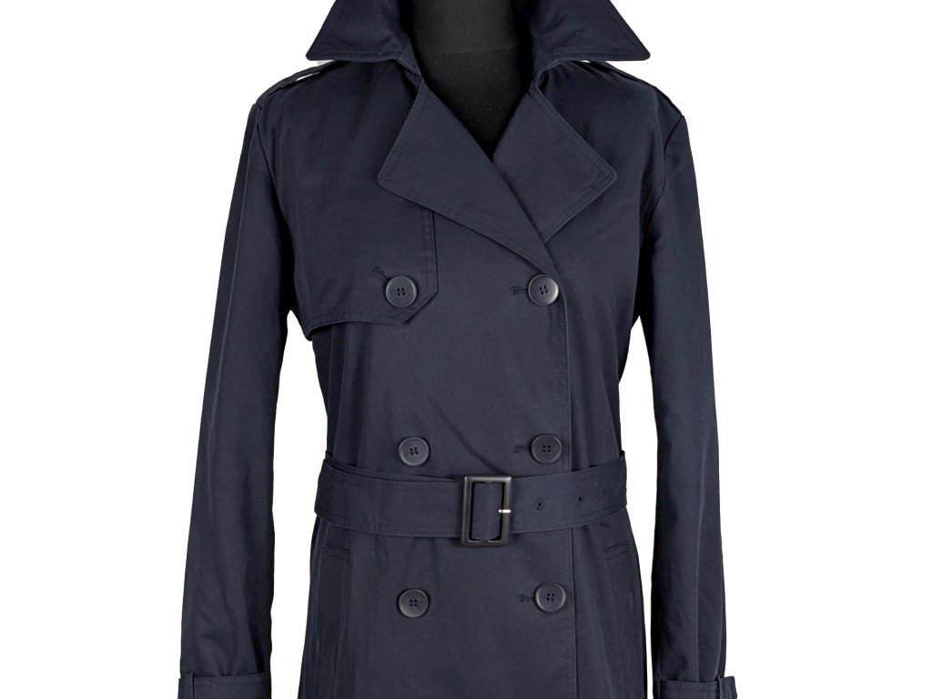Dámský dlouhý modrý trenčkot s páskem C&A 36