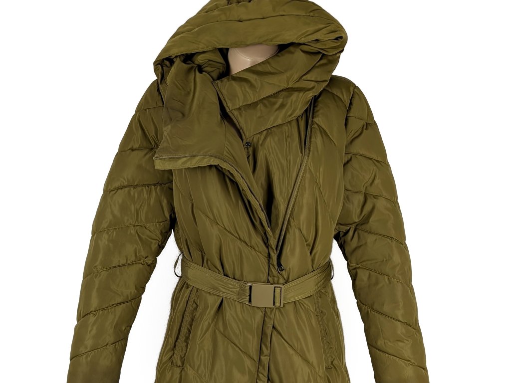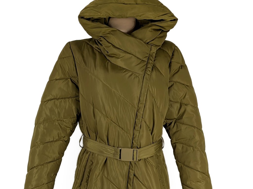 Dámský dlouhý prošívaný kabát s páskem a kapucí Fly Luxury XL