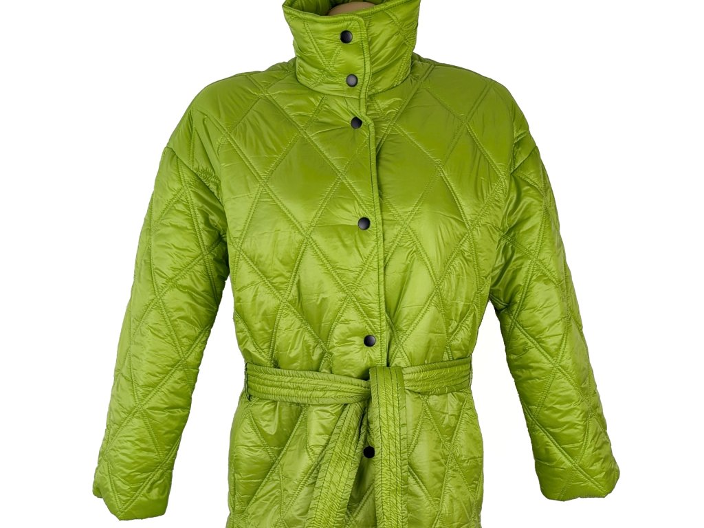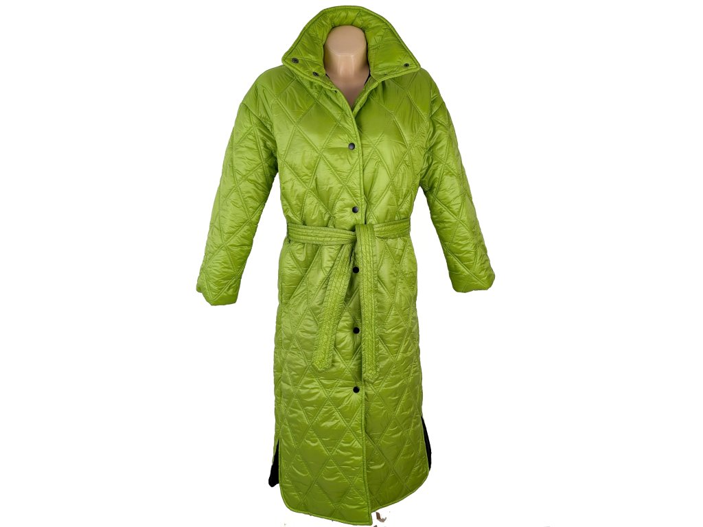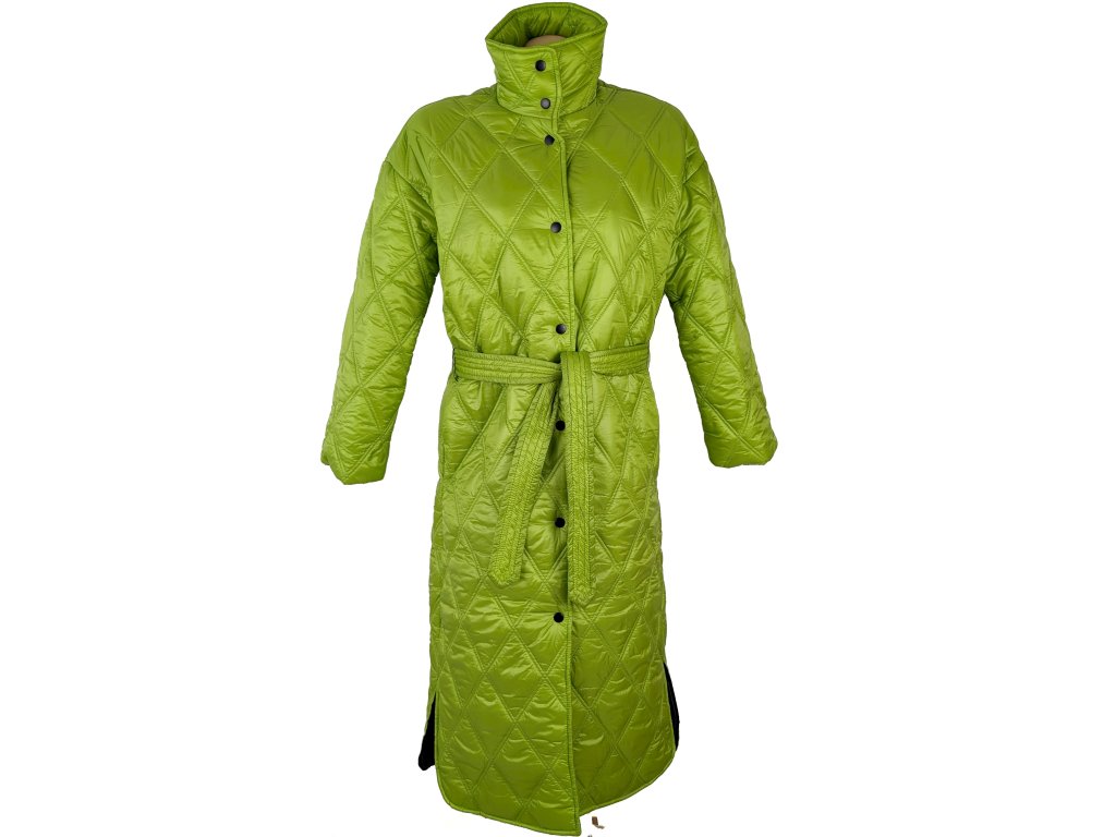 Dámský dlouhý prošívaný limetkový kabát s páskem M/38