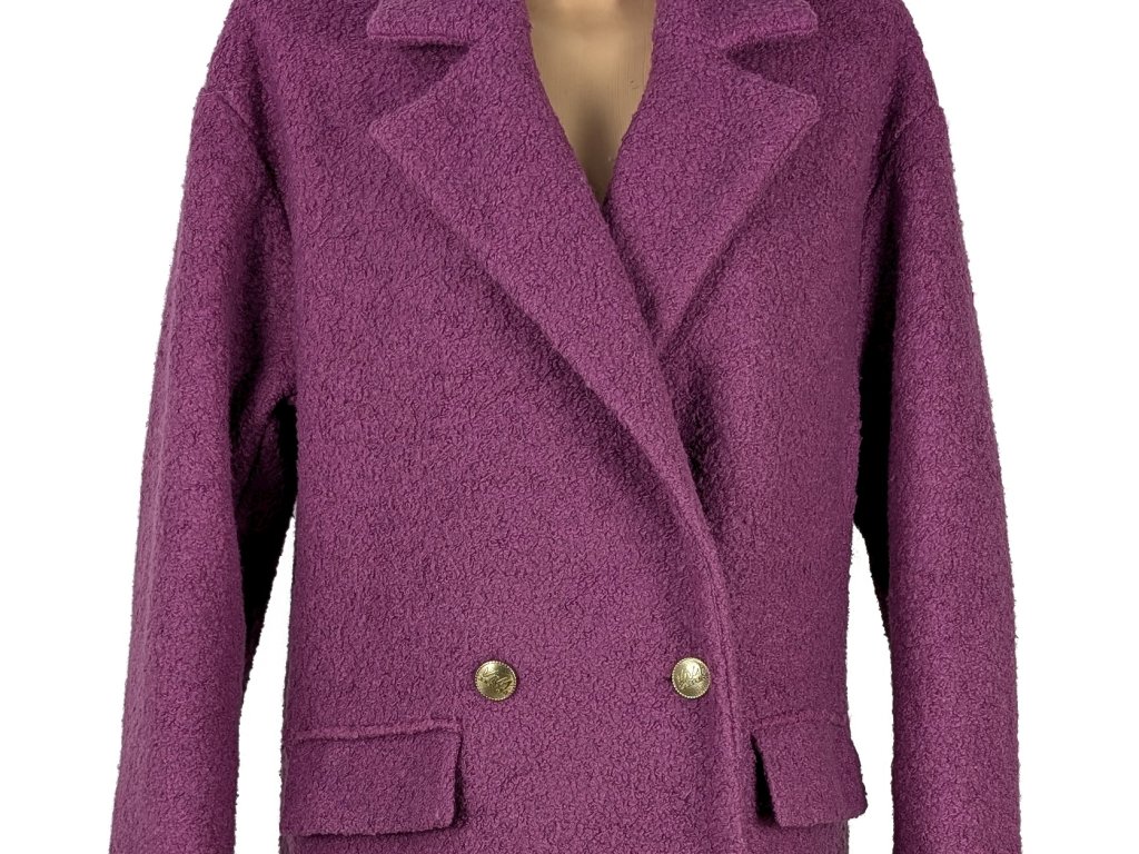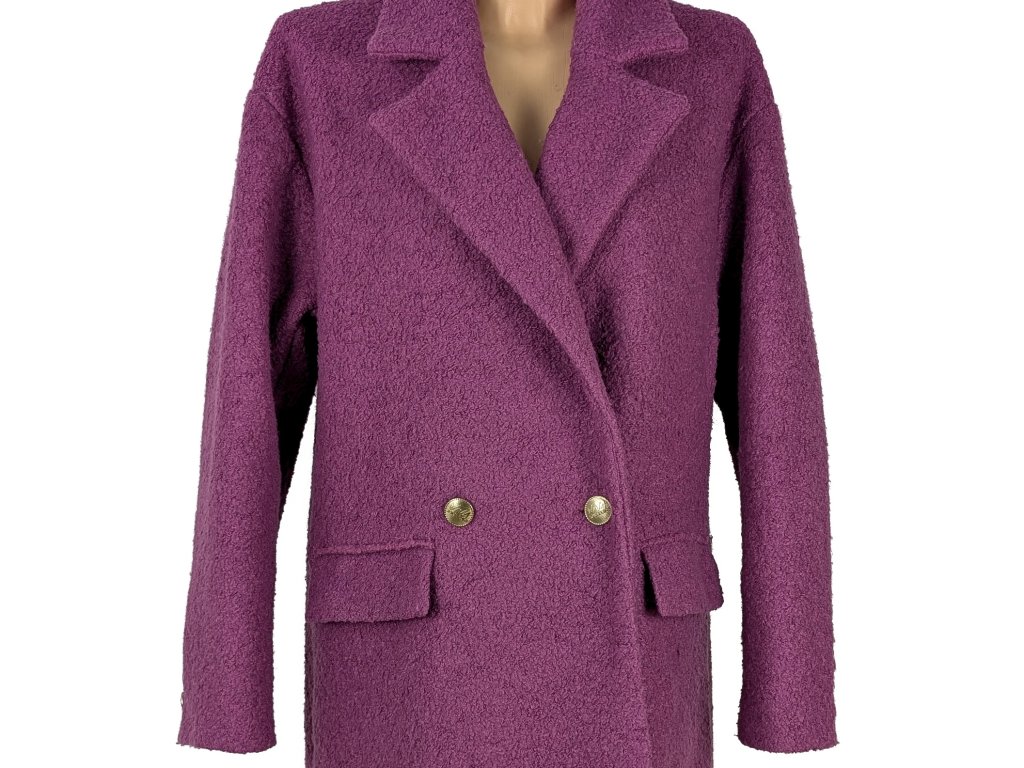 Vlněný (45%) dámský dlouhý fialový oversize kabát Viva Couture 40