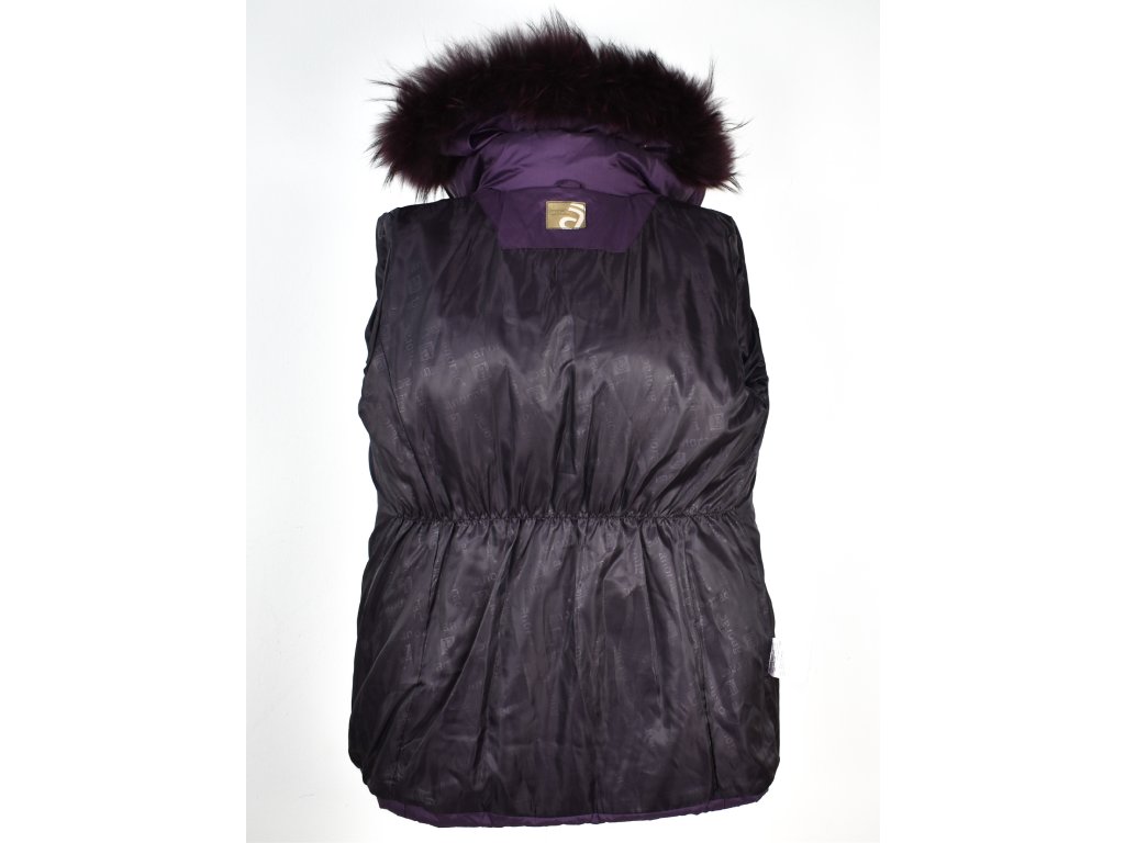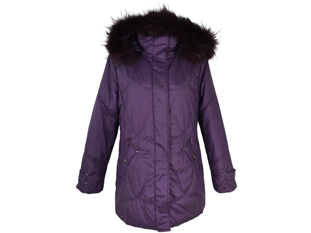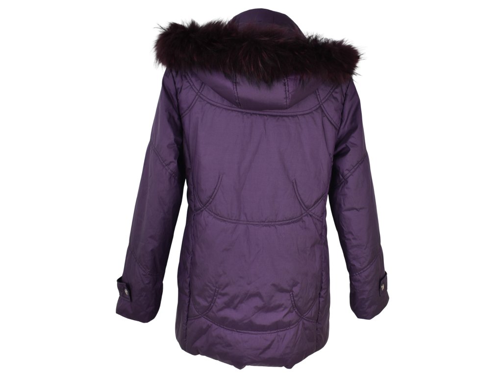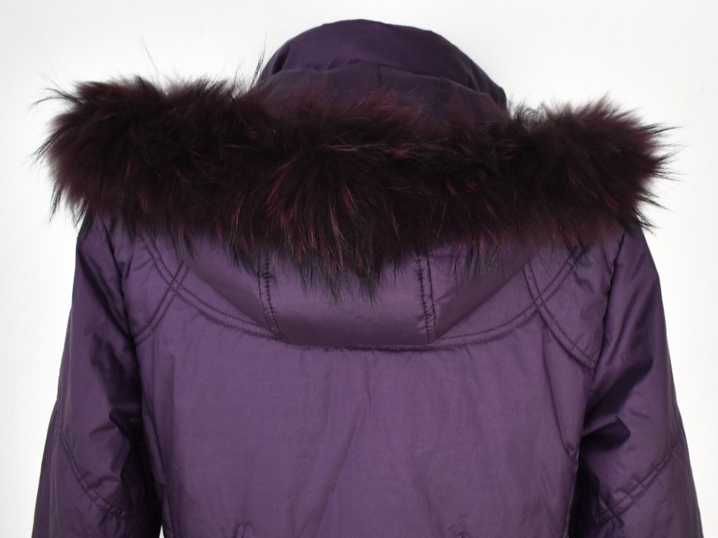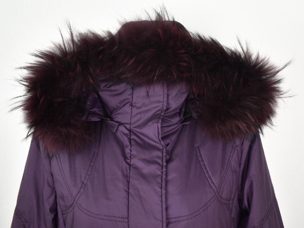 Dámský fialový prošívaný kabát s kapucí s pravou kožešinou Anorac 42