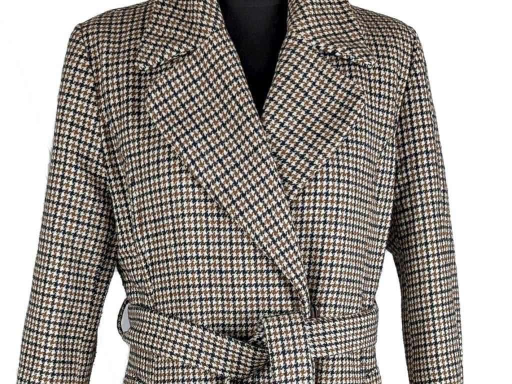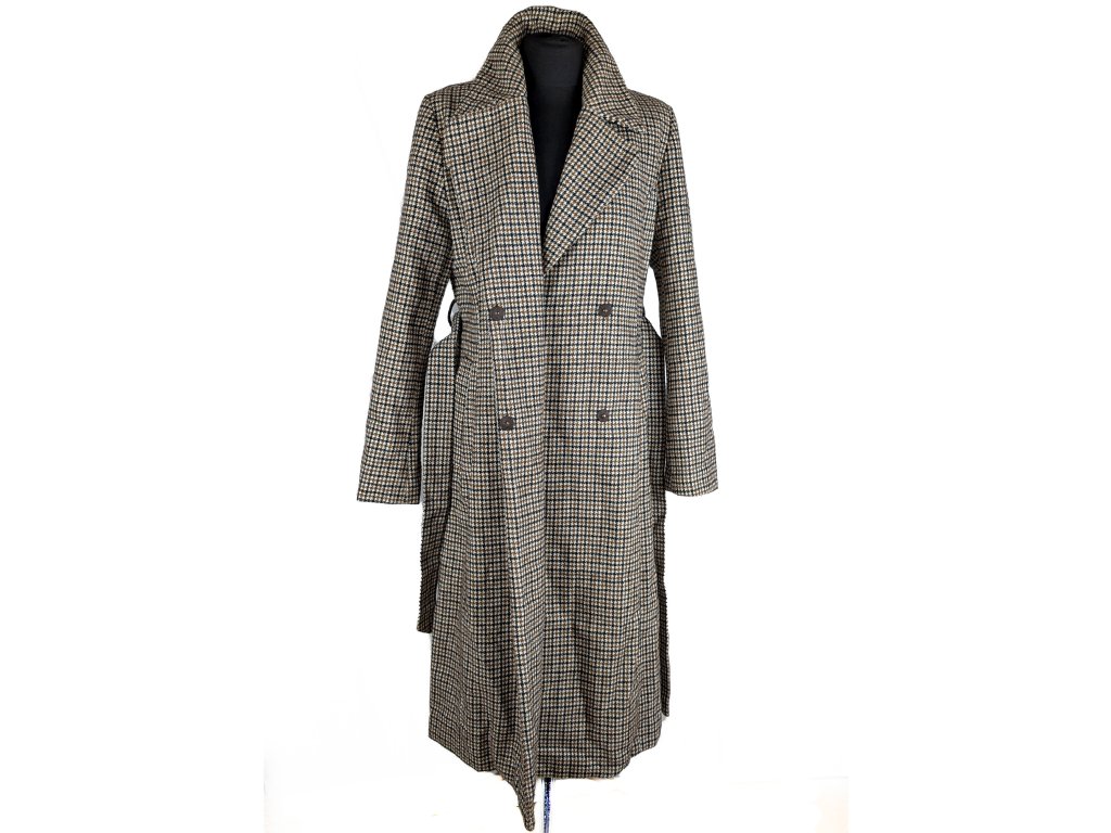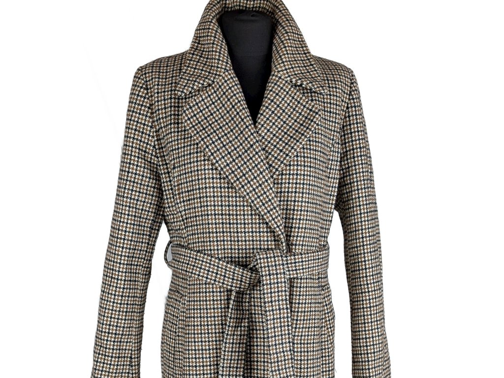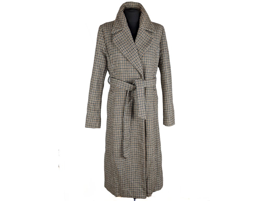 Dámský hnědý dlouhý kabát s páskem, kohoutí stopa Reserved 12/40