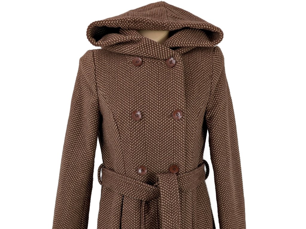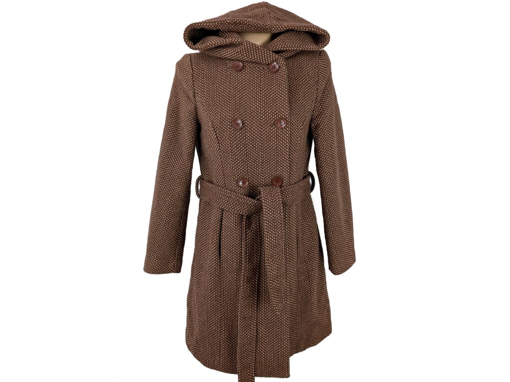 Dámský hnědý dvouřadý kabát s páskem John Baner S/M