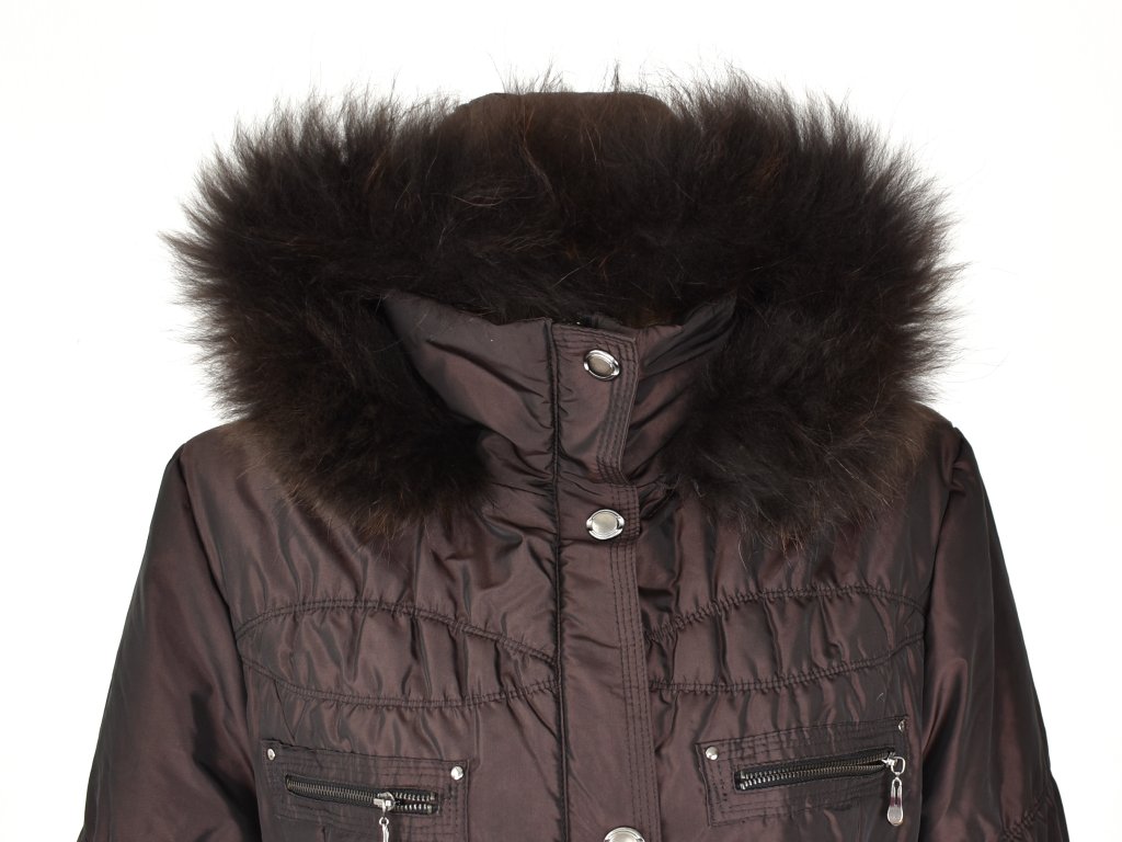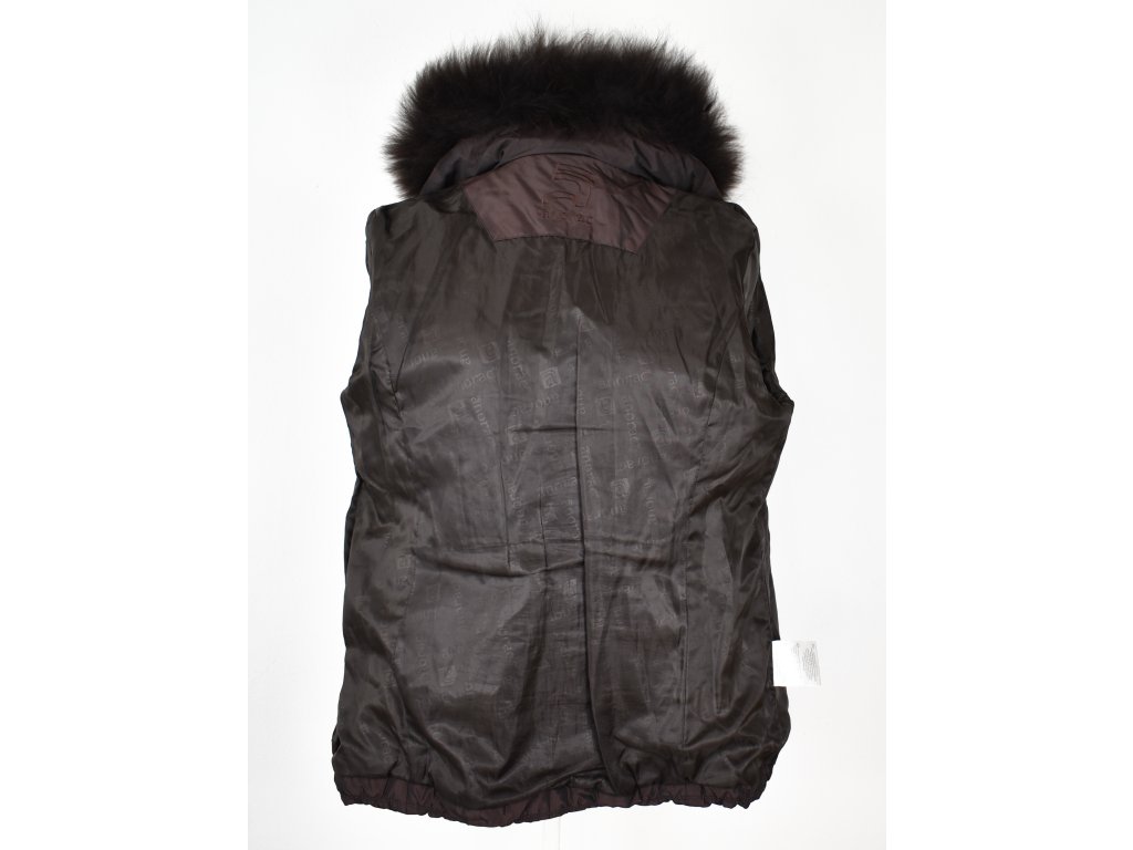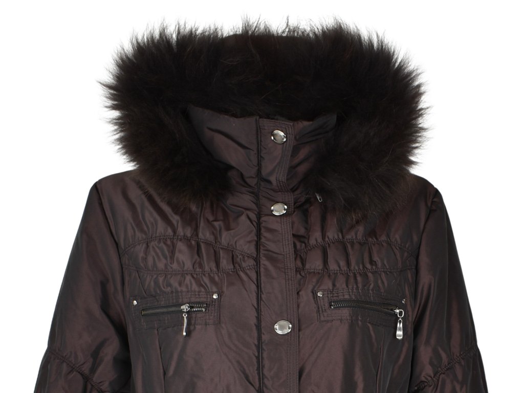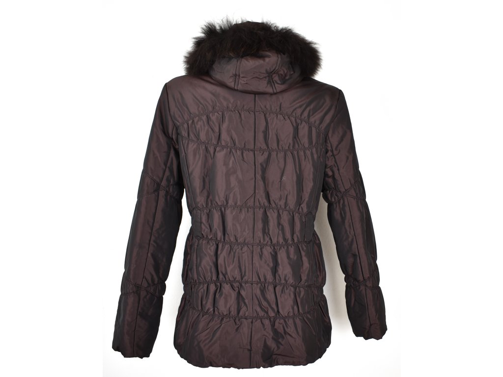 Dámský hnědý prošívaný kabát s kapucí s pravou kožešinou Anorac 42