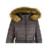 Camaieu, dámský hnědý prošívaný kabát s páskem a kapucí, 100% polyester, odnimatelný kožíšek