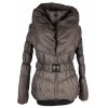 Dámský hnědý prošívaný kabát s páskem a límcem S