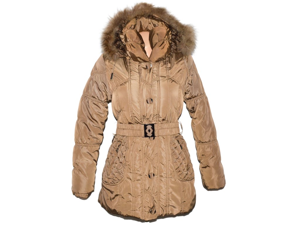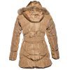 Dámský hnědý prošívaný zimní kabát s páskem a kapucí FOREST S/M