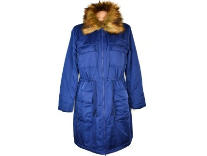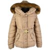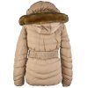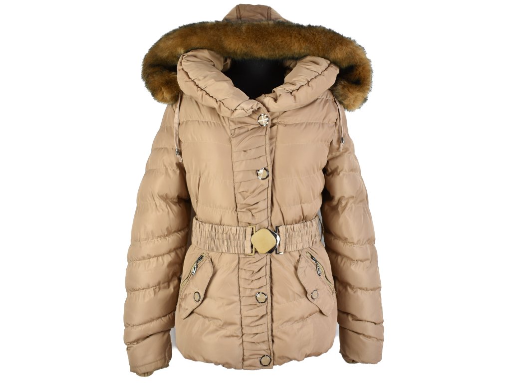 Dámský hnědý prošívaný zimní kabát s páskem a límcem S