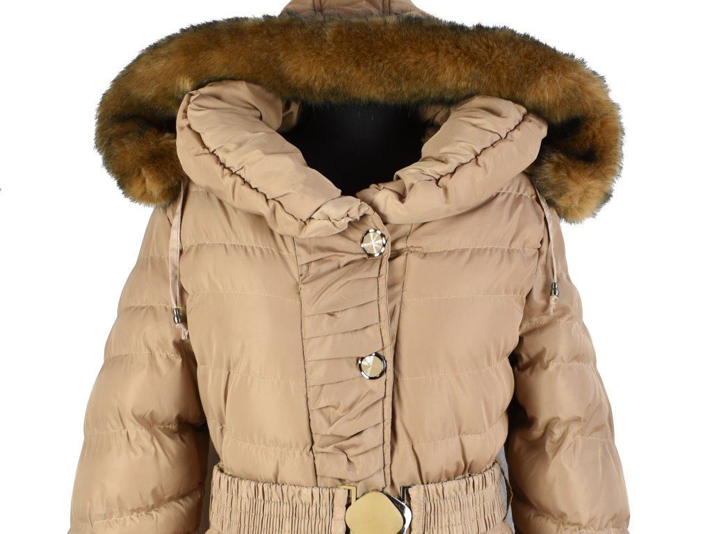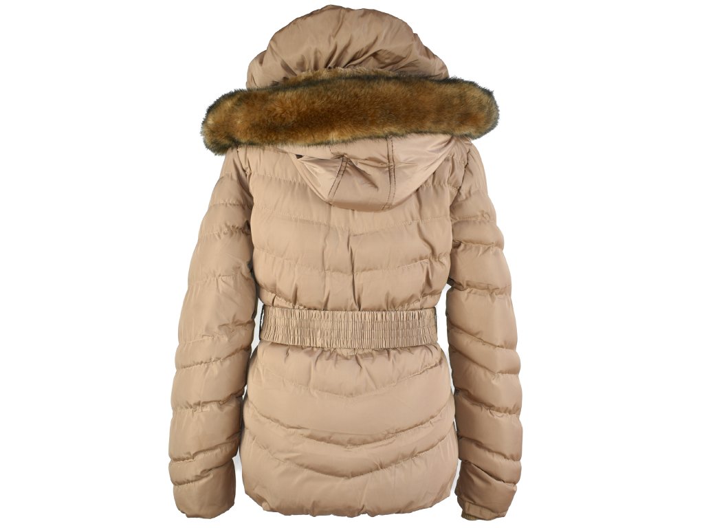 Dámský hnědý prošívaný zimní kabát s páskem a límcem S