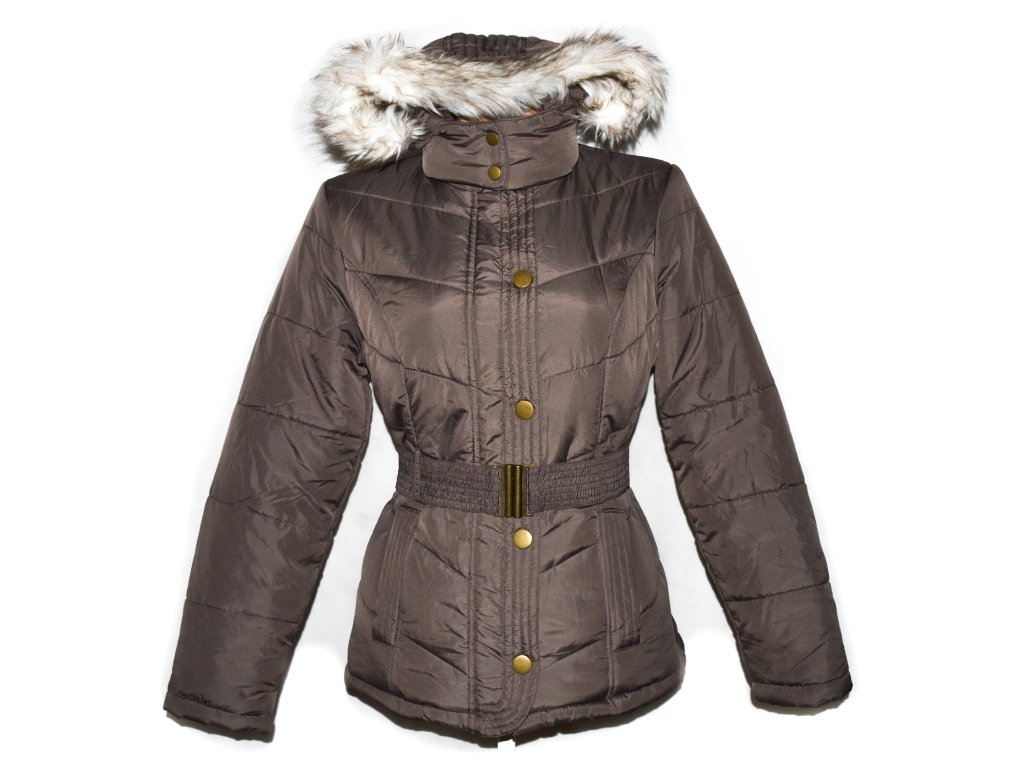 Dámský hnědý šusťákový kabát s páskem a kapucí F&F 40