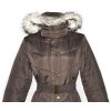 F&F, Dámský kabát, hnědý kabát s páskem a kapucí, velikost 40, 100% polyester, na zip a cvoky