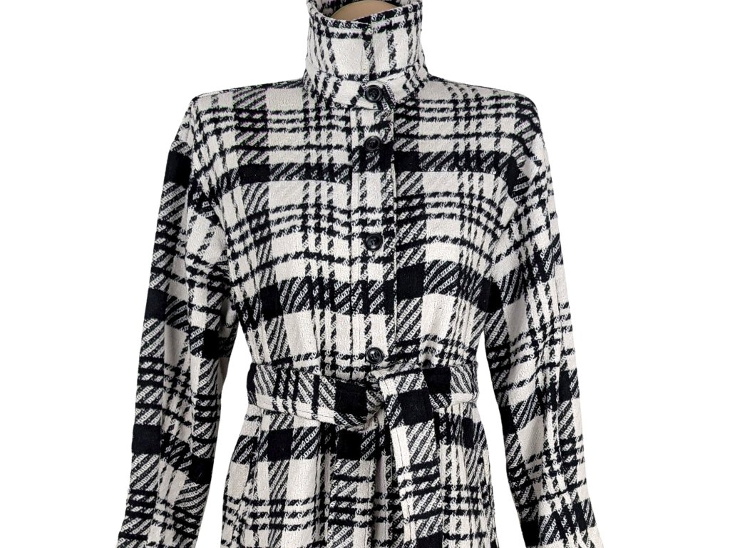 Dámský kostkovaný oversize kabát s páskem Reserved S