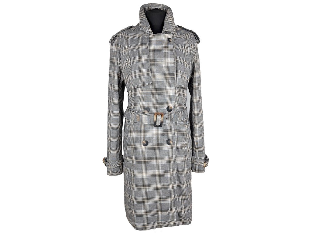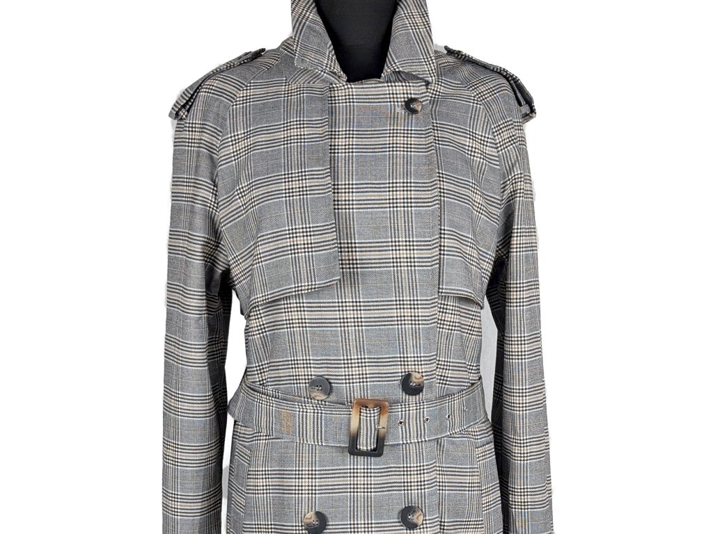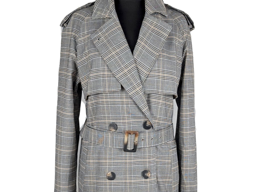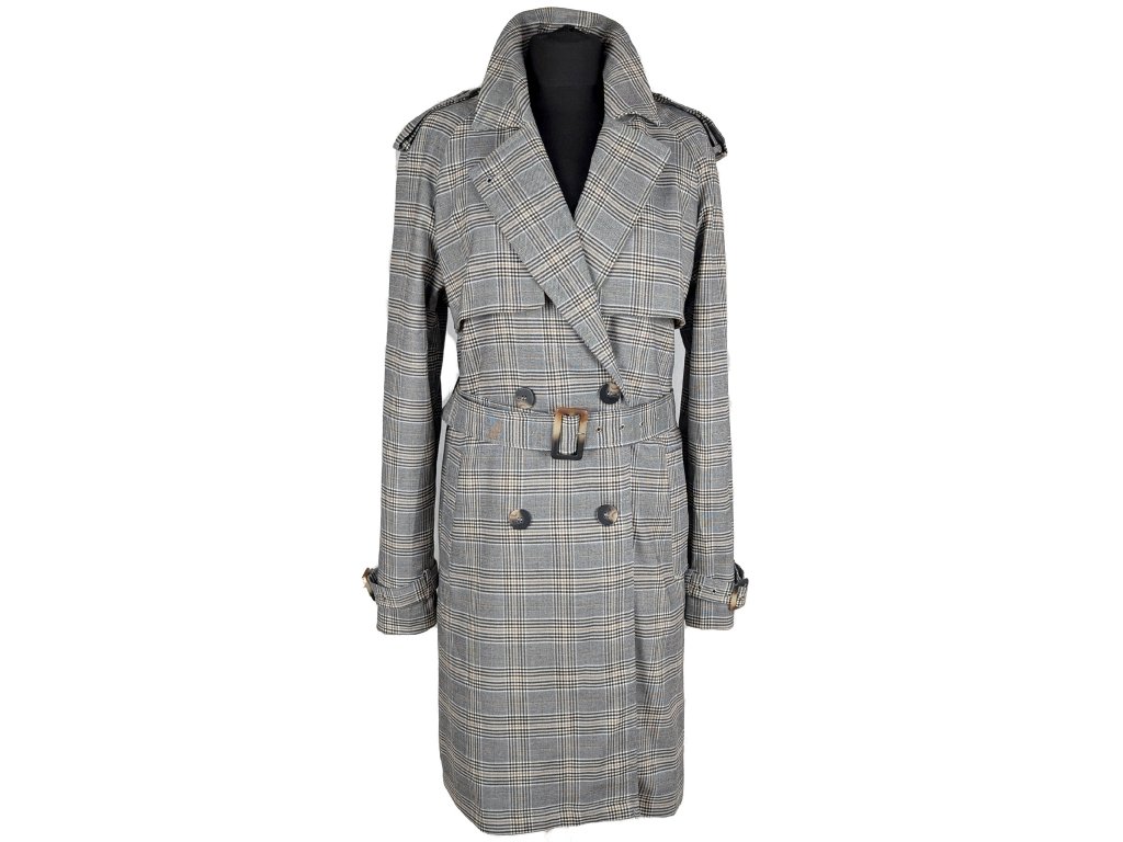 Dámský kostkovaný trenčkot s páskem 42