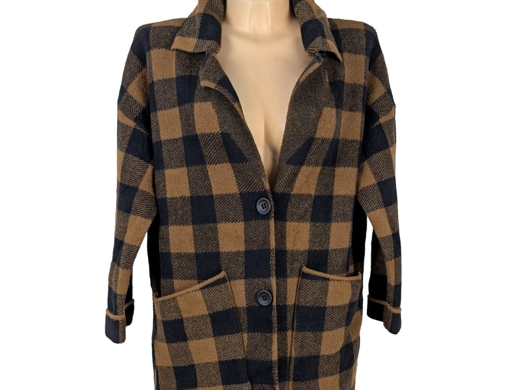 Dámský kostkovaný úpletový oversize kabátek ZARA Knit M