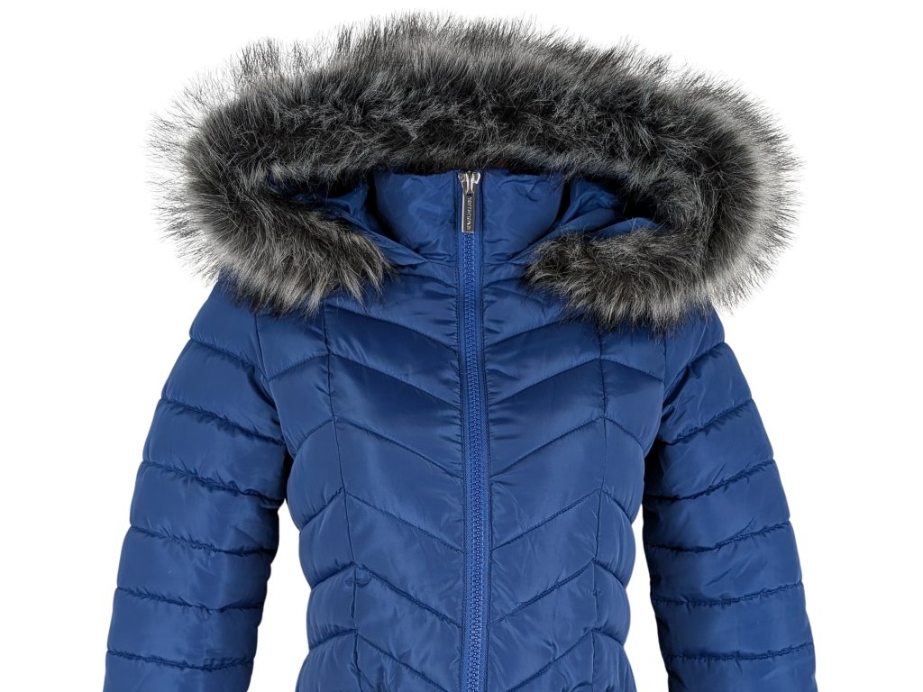 Dámský modrý prošívaný kabát s kapucí Terranova S