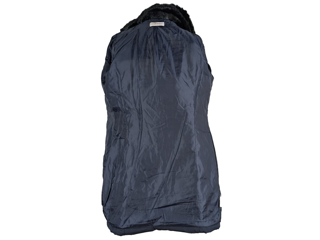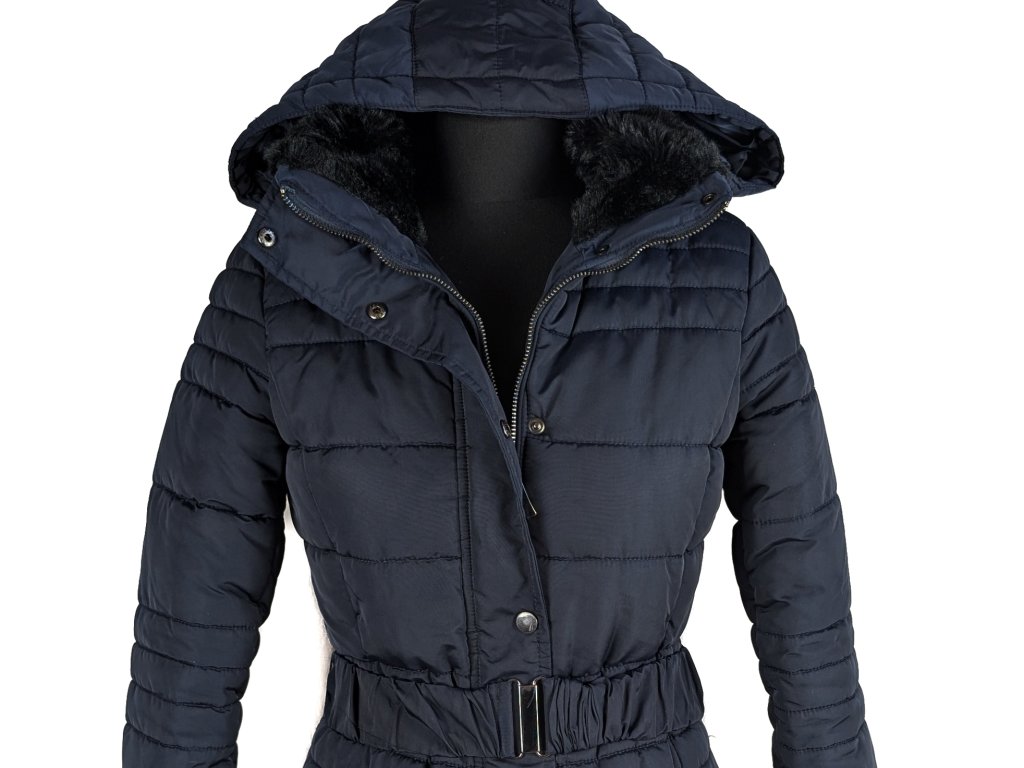 Dámský modrý prošívaný kabát s páskem a kapucí Camaieu 8/36