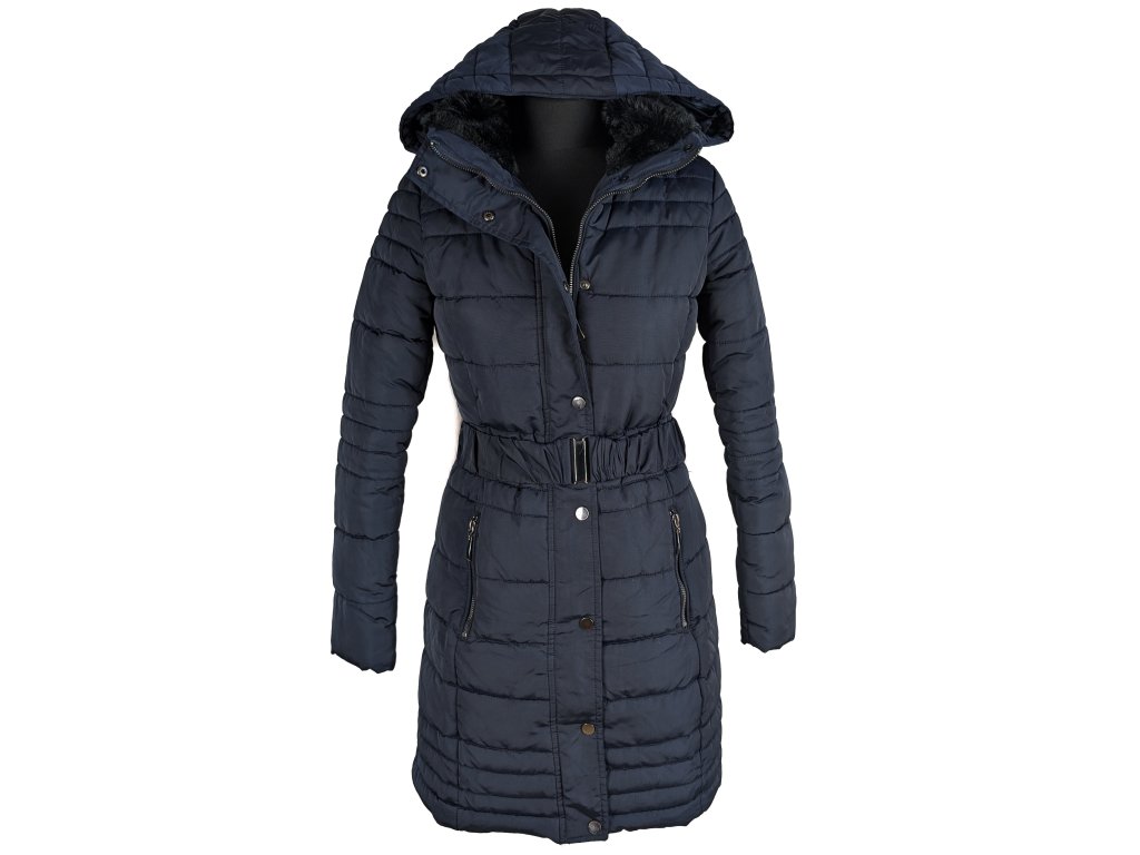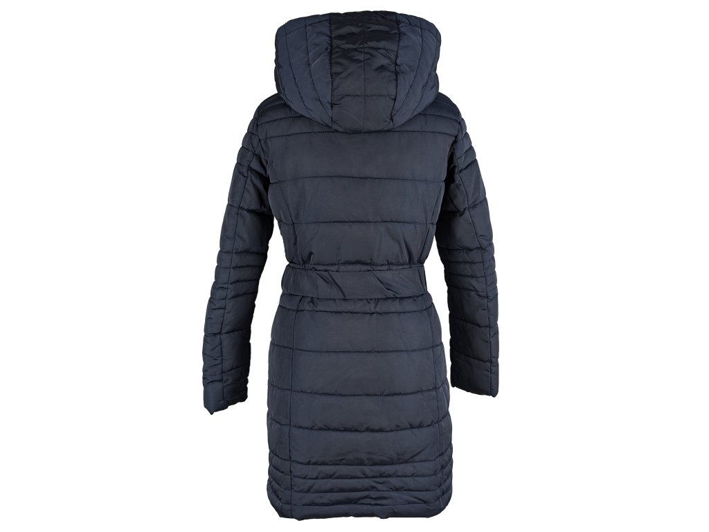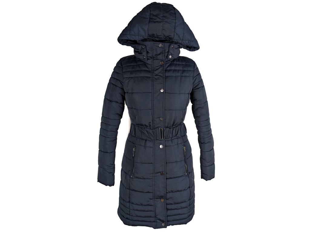 Dámský modrý prošívaný kabát s páskem a kapucí Camaieu 8/36