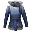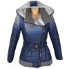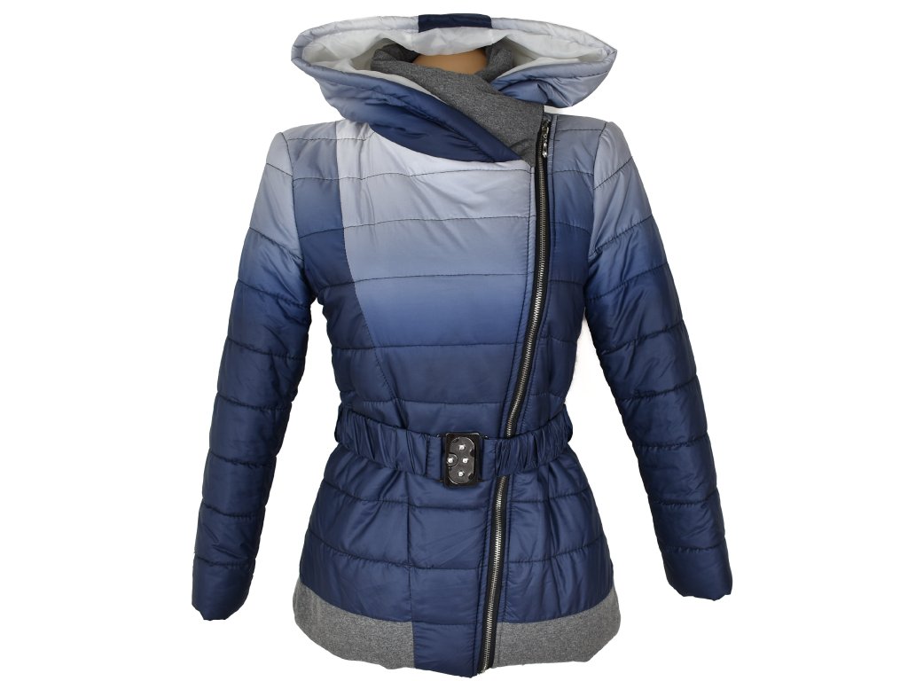 Dámský modrý prošívaný kabát s páskem a kapucí Miss Forever S