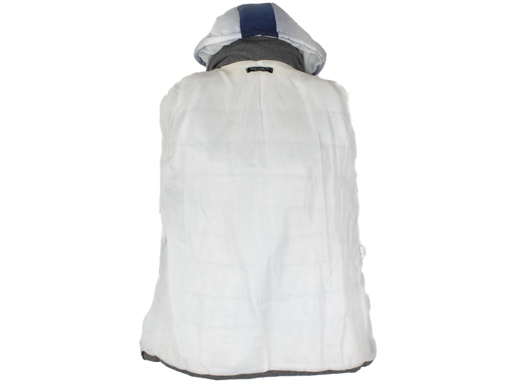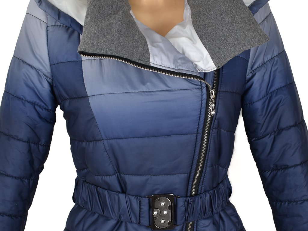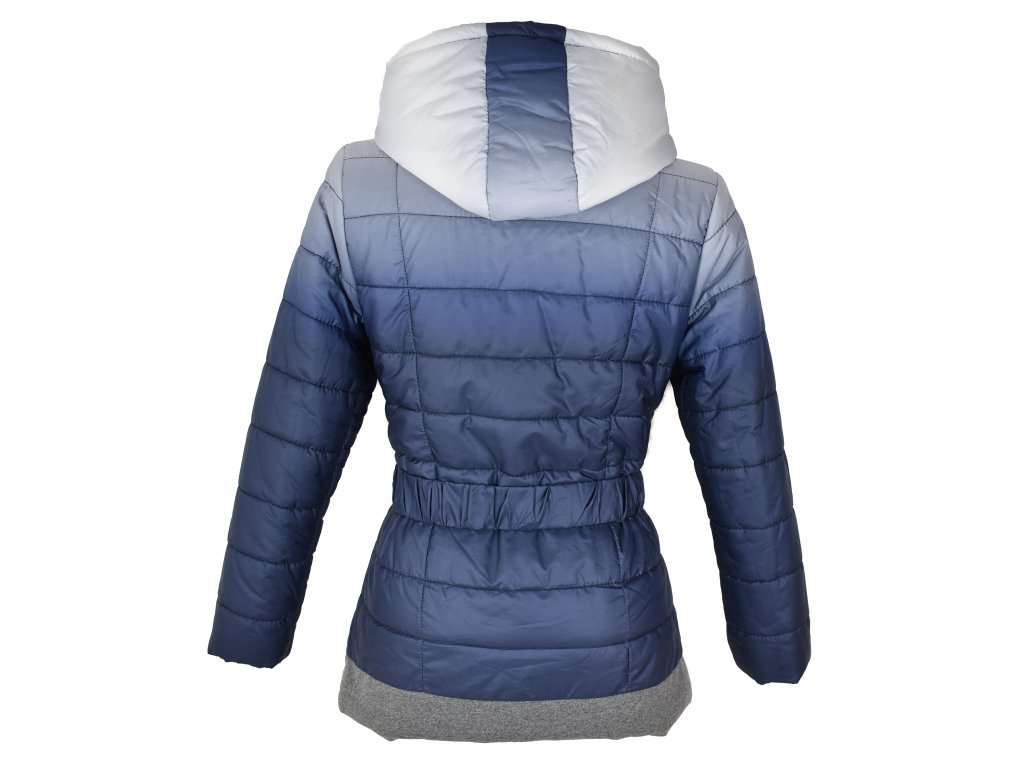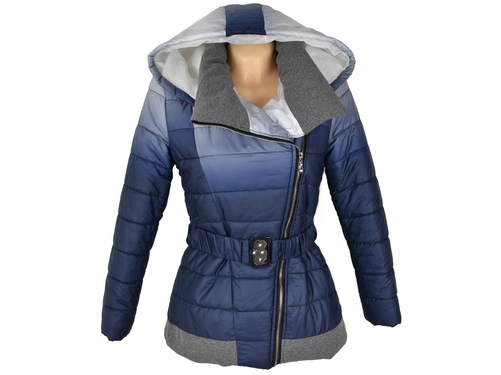 Dámský modrý prošívaný kabát s páskem a kapucí Miss Forever S