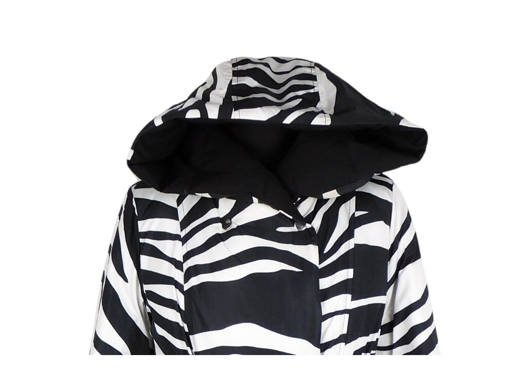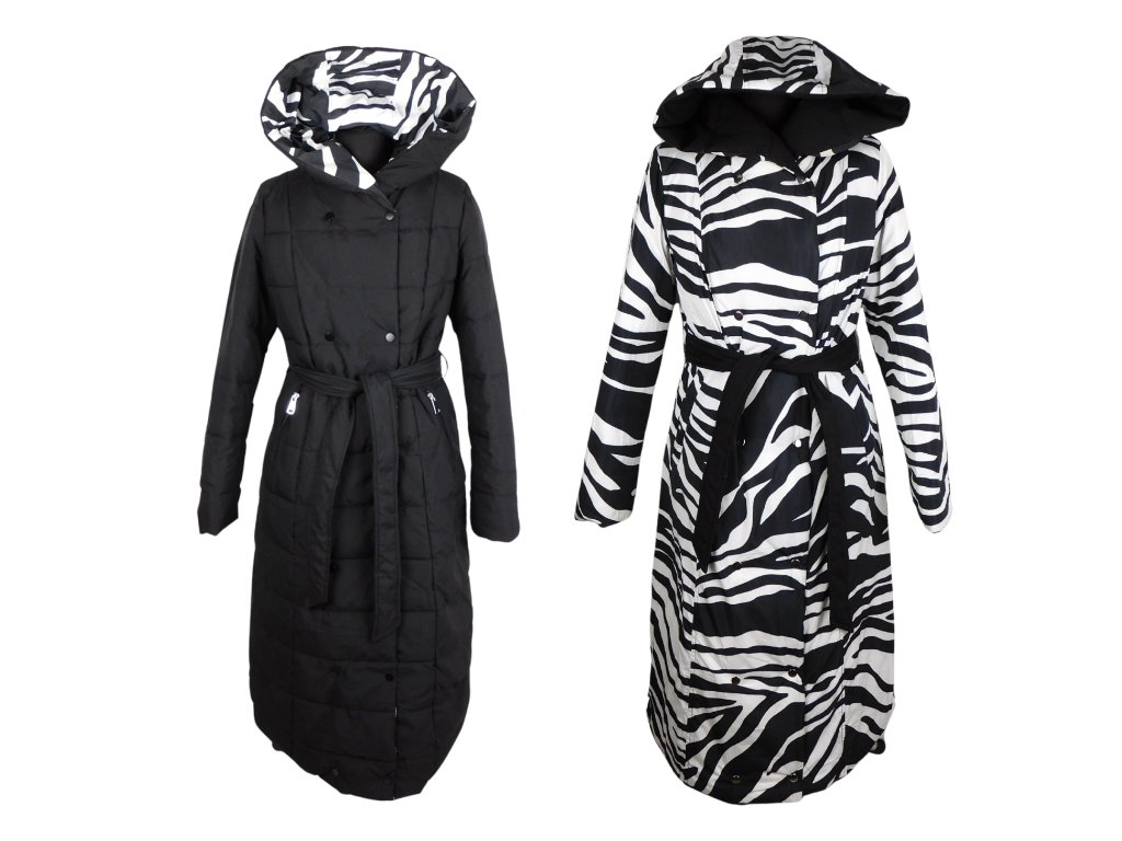 Dámský oboustranný černobílý dlouhý kabát s kapucí