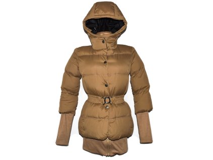 Dámský oranžový šusťákový kabát s páskem a límcem M