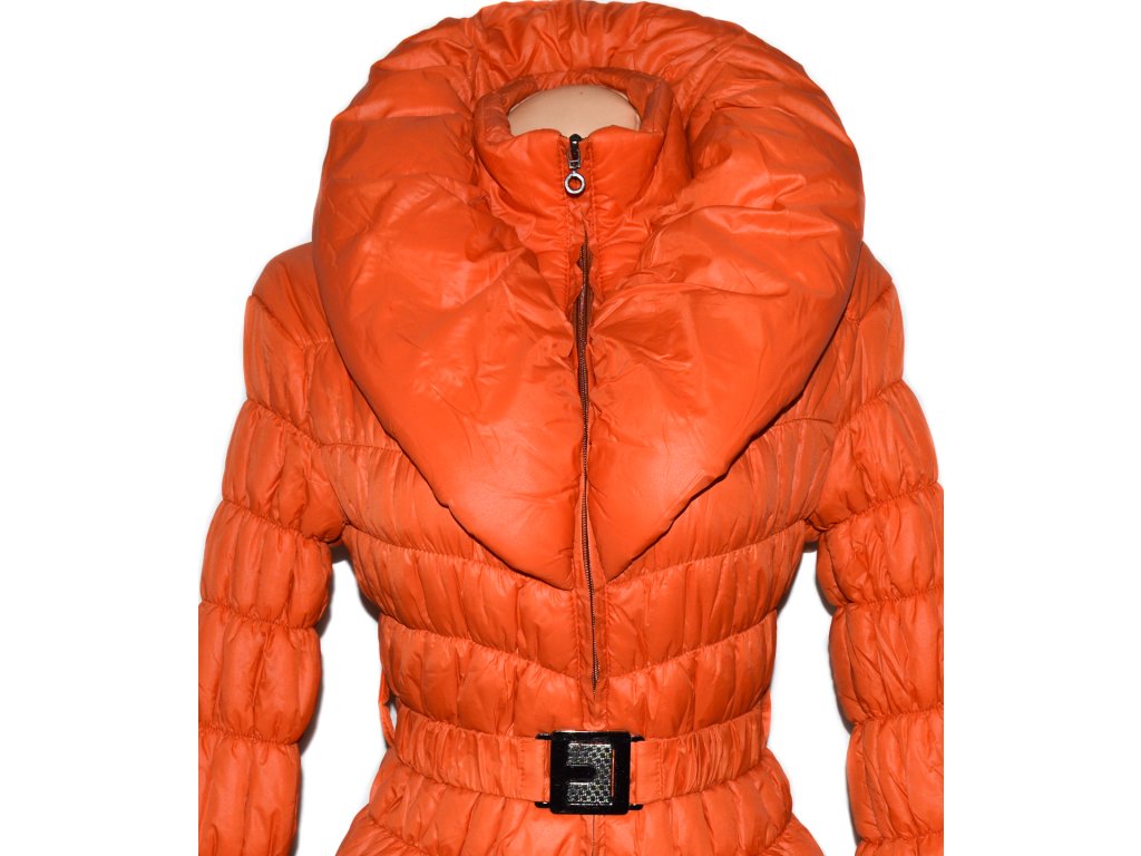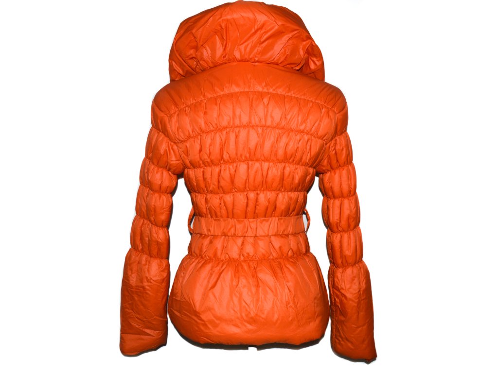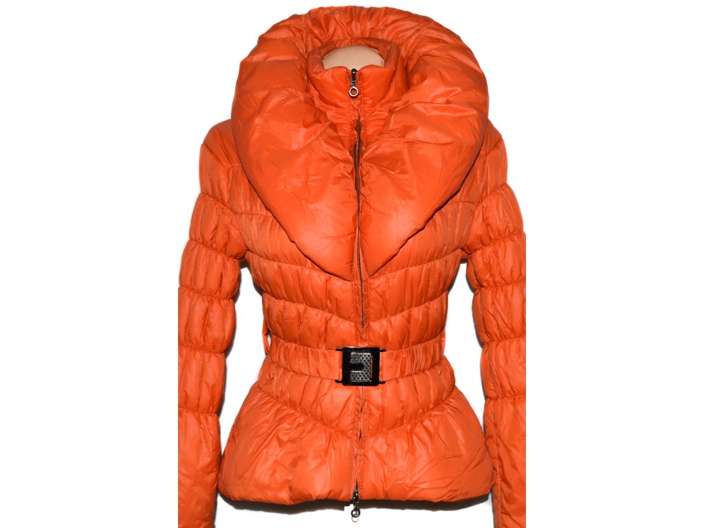 Dámský oranžový šusťákový kabát s páskem a límcem M