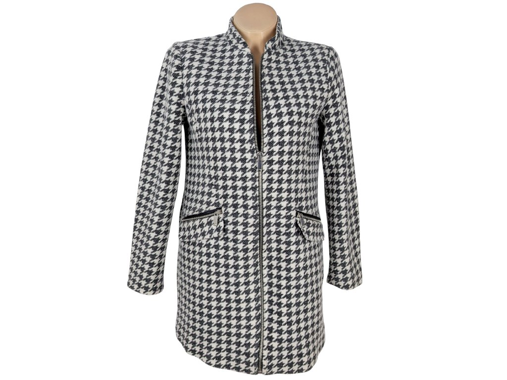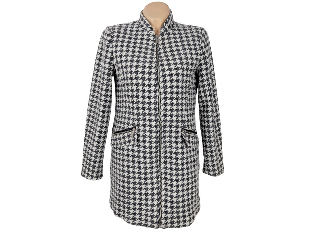 Dámský přechodný šedobílý kabát na zip, kohoutí stopa Stradivarius M