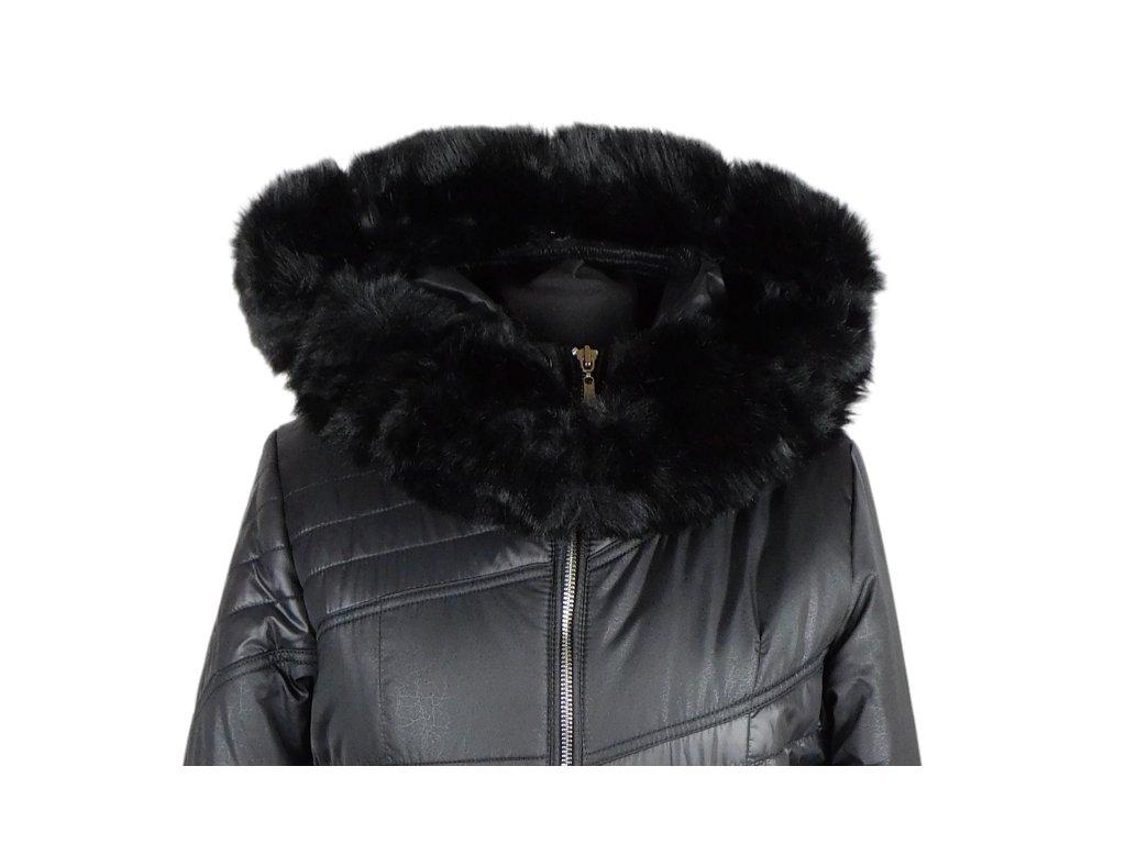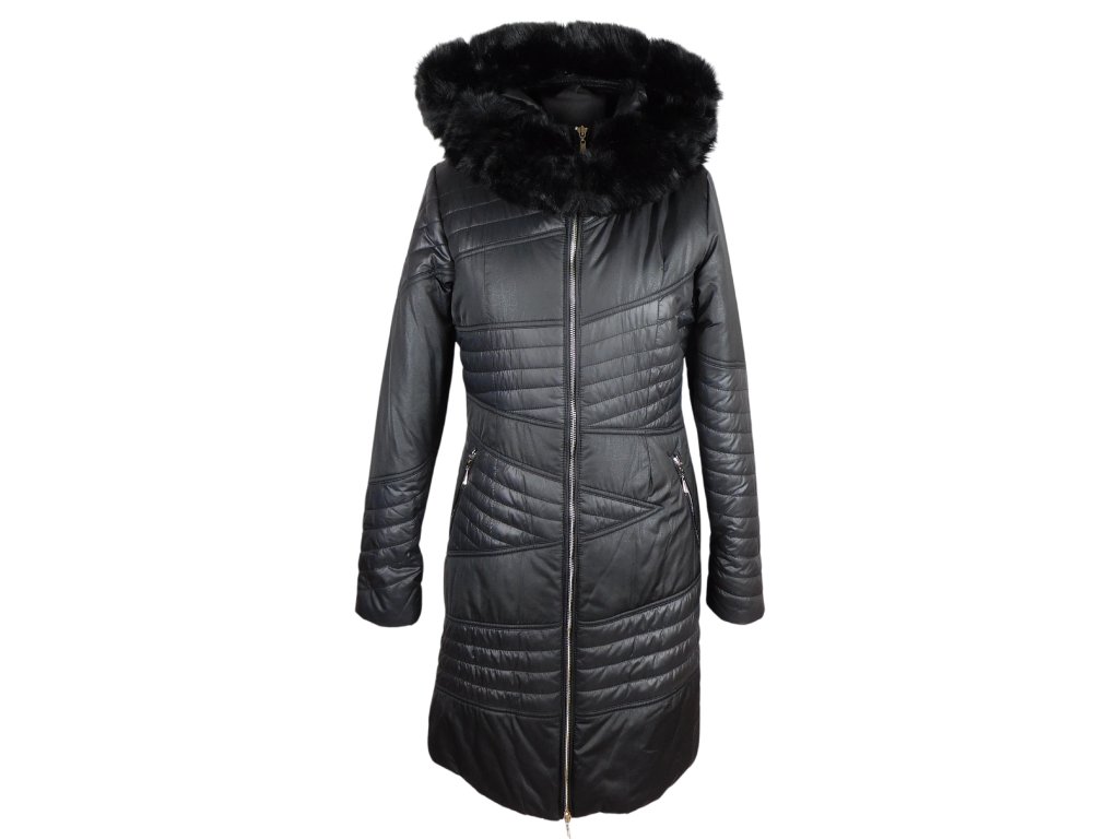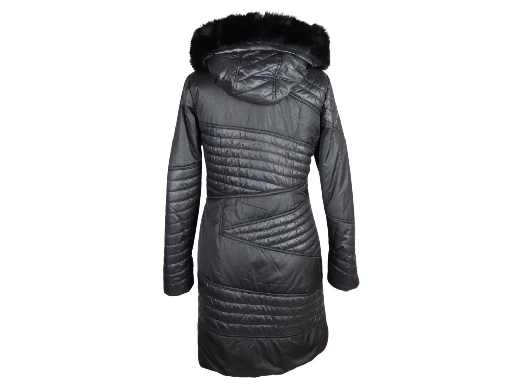 Dámský prošívaný černý kabát s kapucí ANORAC S, XXL