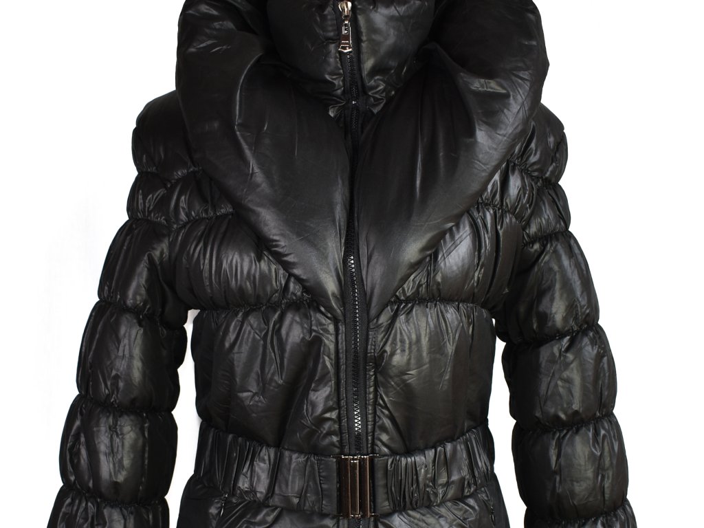 Dámský prošívaný černý kabát s páskem S/M