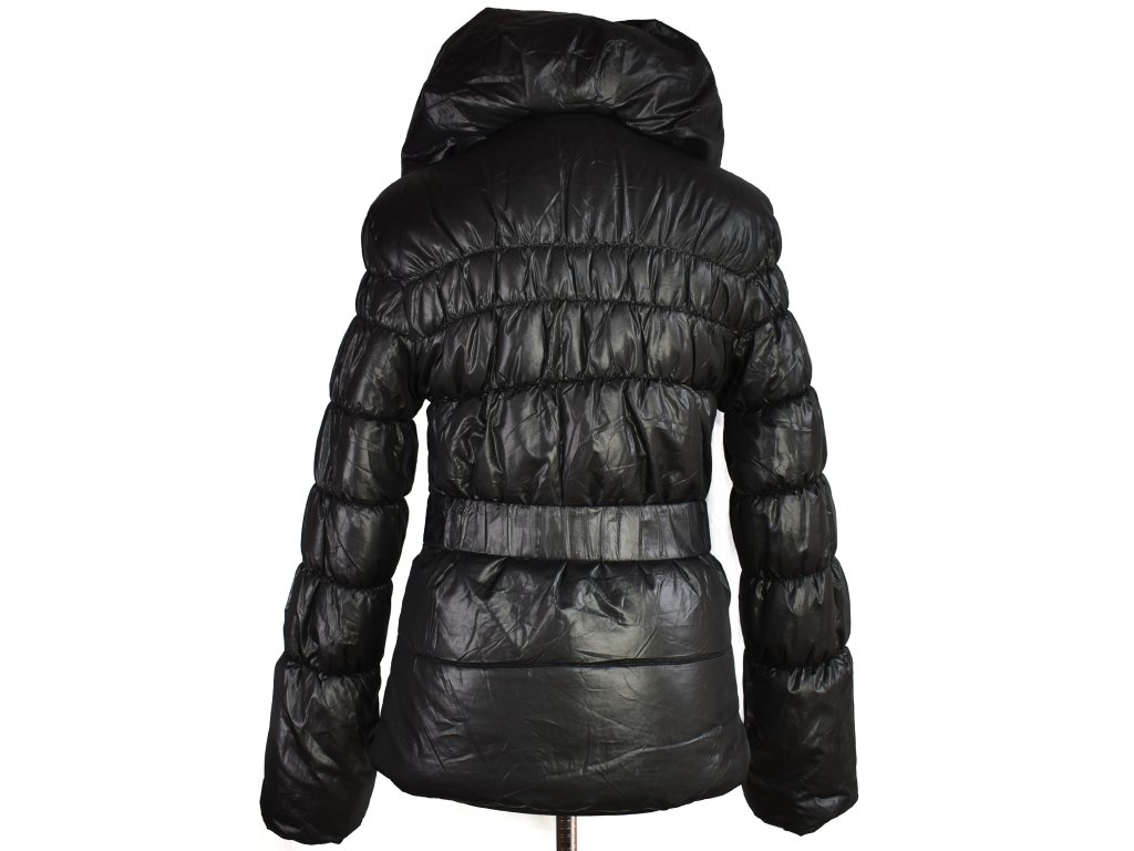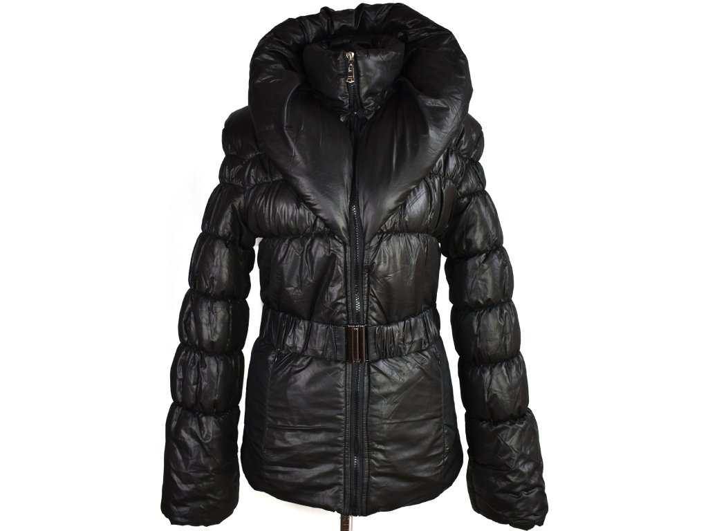 Dámský černý prošívaný kabát s páskem, velikost S/M