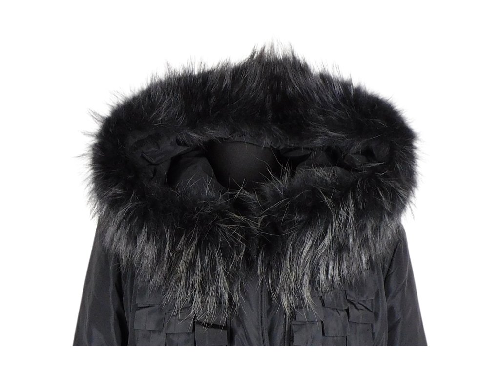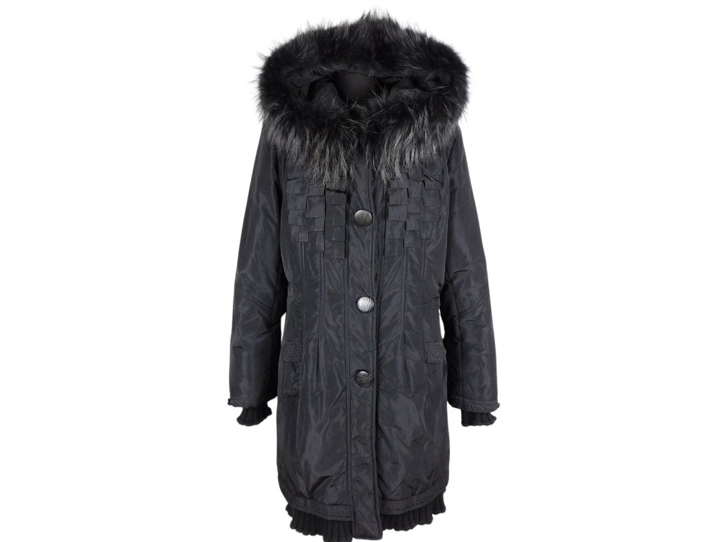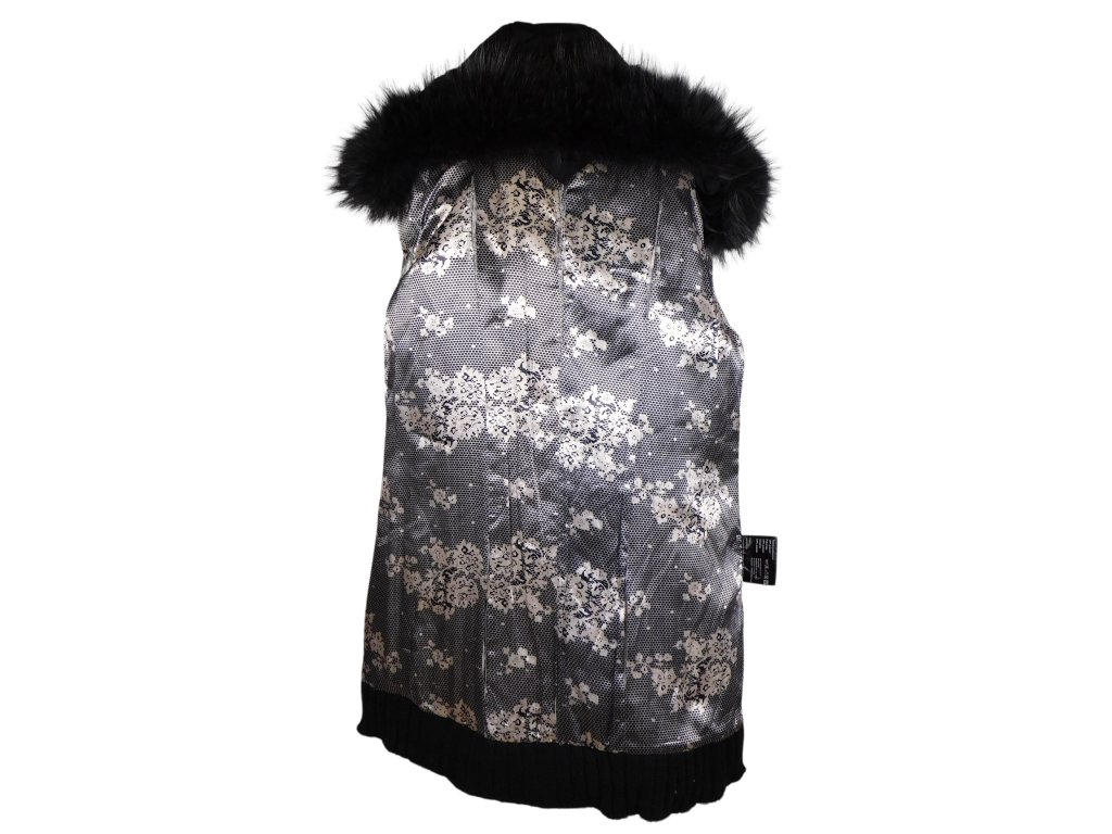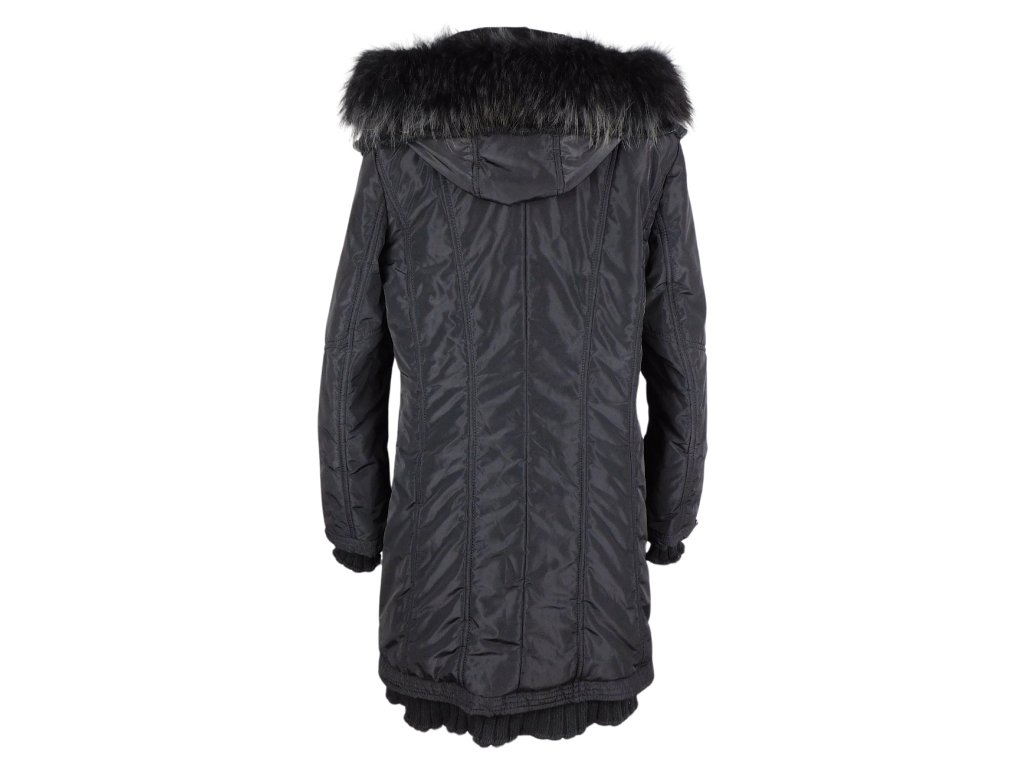 Dámský prošívaný černý zateplený kabát s pravou kožešinou VIVERO L*