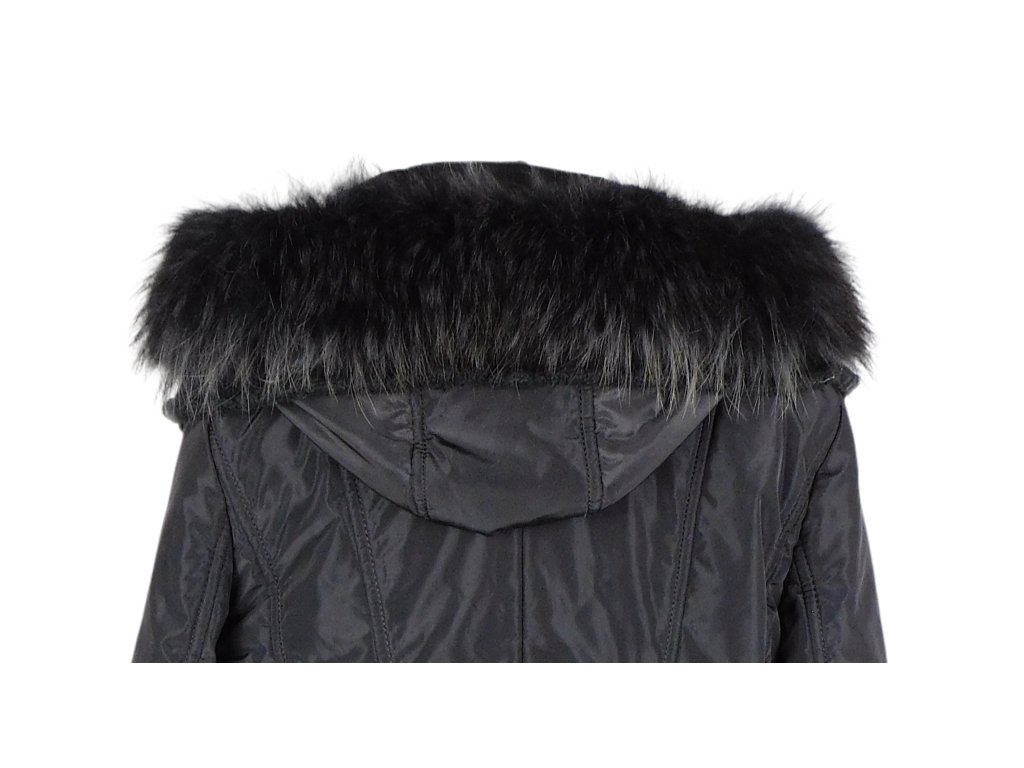 Dámský prošívaný černý zateplený kabát s pravou kožešinou VIVERO