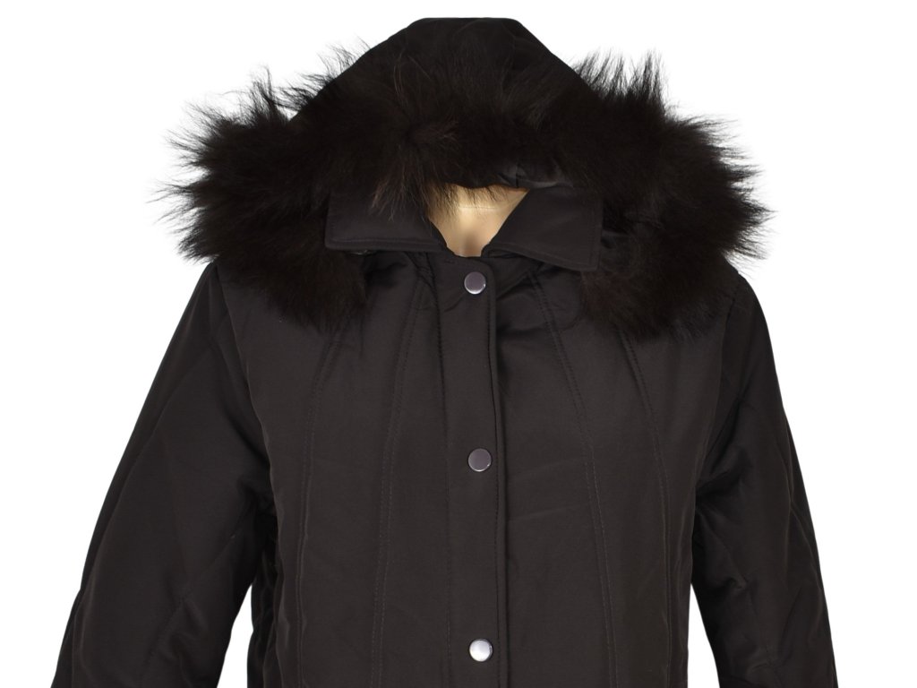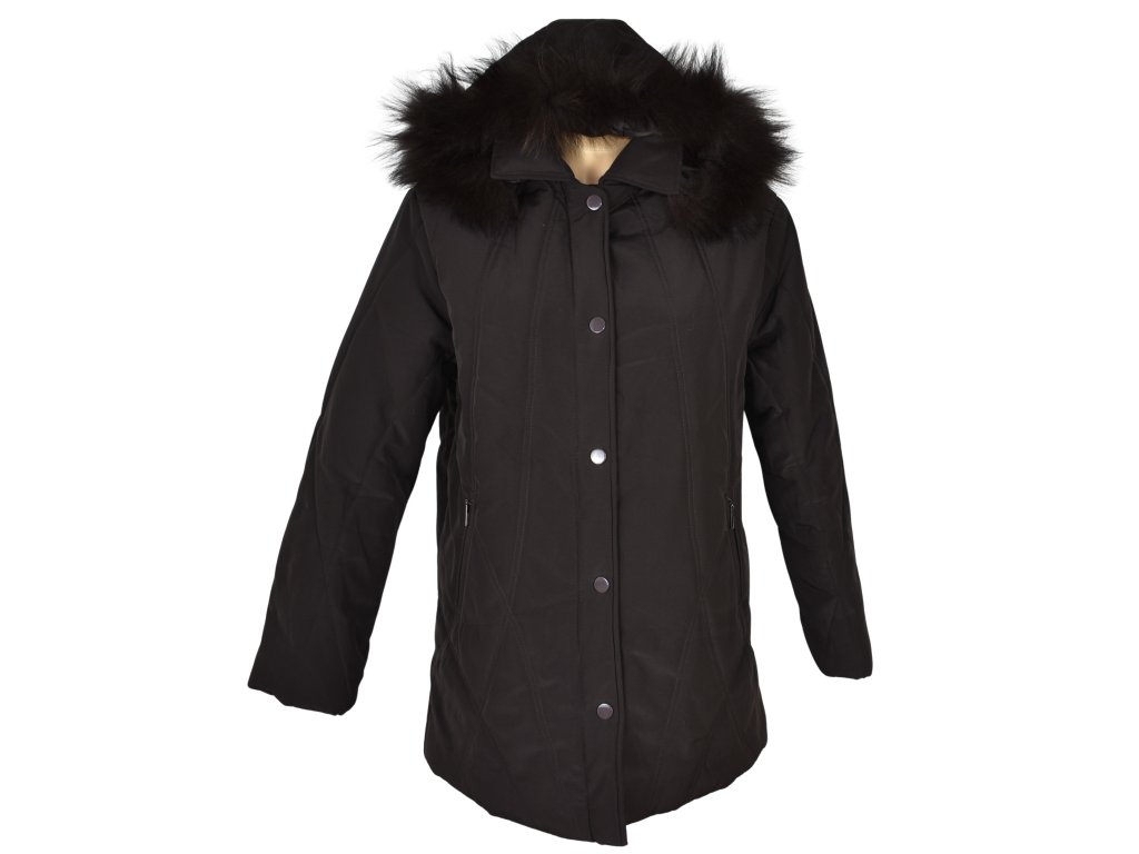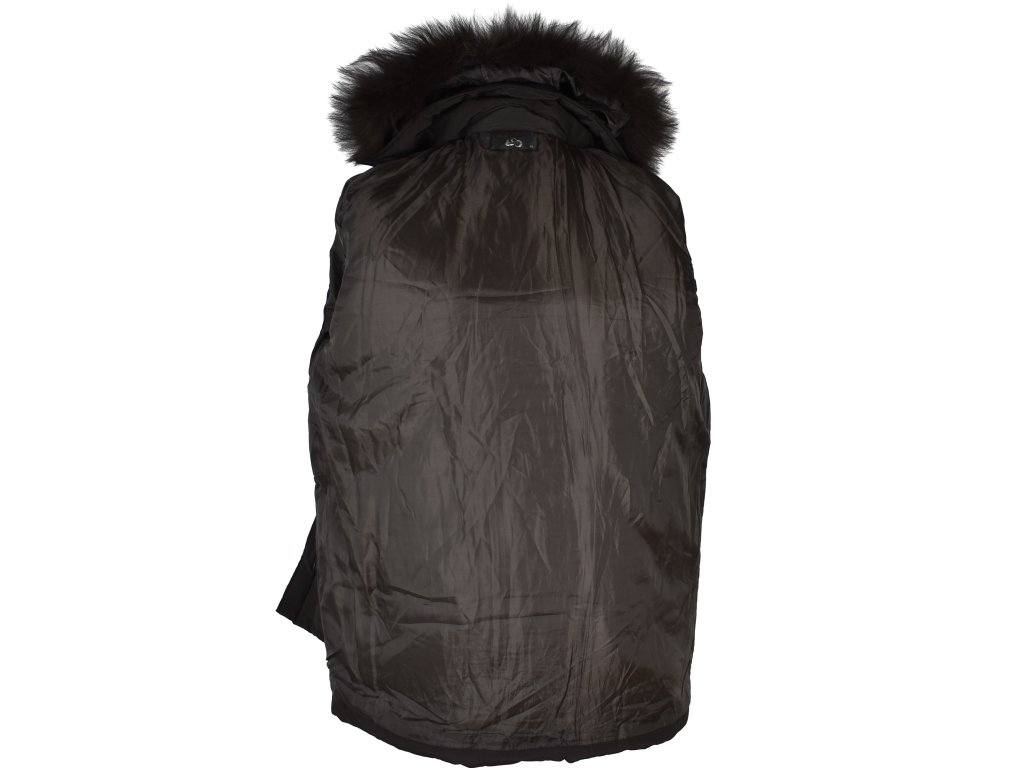 Dámský prošívaný hnědý kabát s kapucí s pravou kožešinou XL