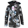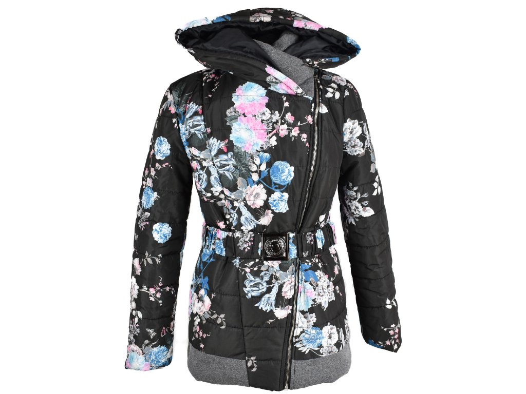 Dámský prošívaný kabát s květinovým vzorem s páskem a kapucí L