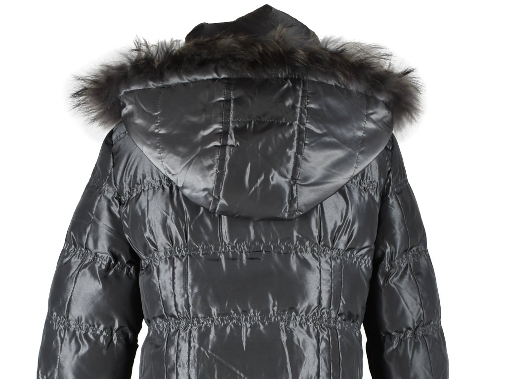 Dámský prošívaný kovový kabát s kapucí s pravou kožešinou O&S Paris M