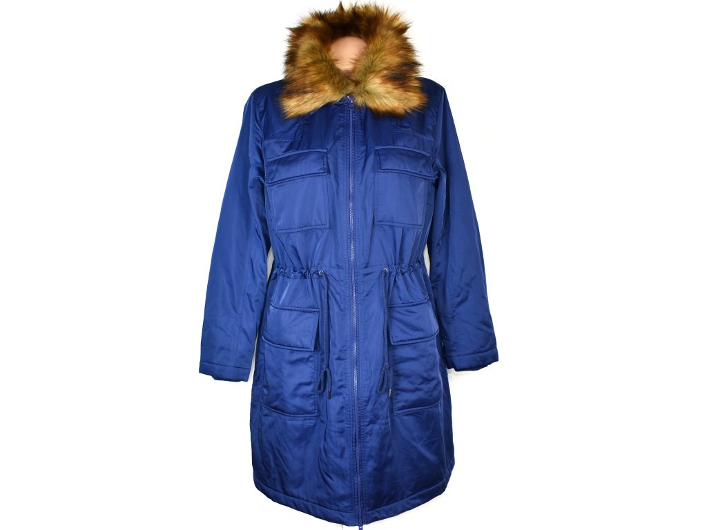 BPC, dámská královsky modrá dlouhá parka s odnimatelným kožíškem, velikost 18/44, zateplená