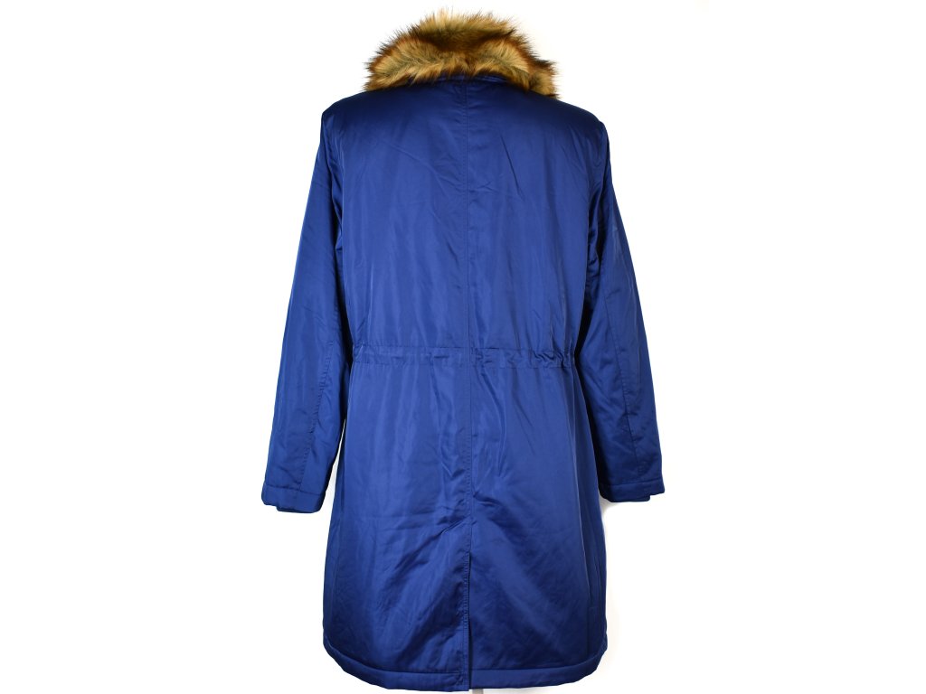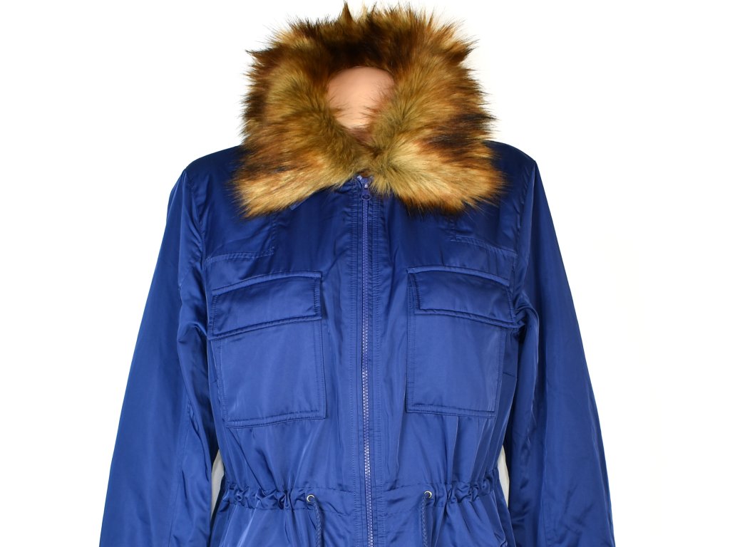 BPC, dámská královsky modrá dlouhá parka s odnimatelným kožíškem, velikost 18/44, zateplená