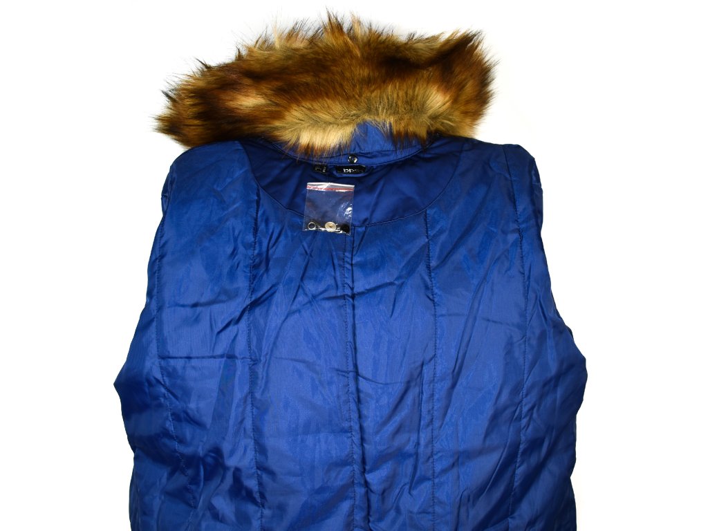 Dámský prošívaný královsky modrý zateplený kabát s kožíškem BPC 18/44