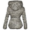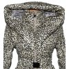 Dámský prošívaný leopardí kabát s páskem a límcem XS, M