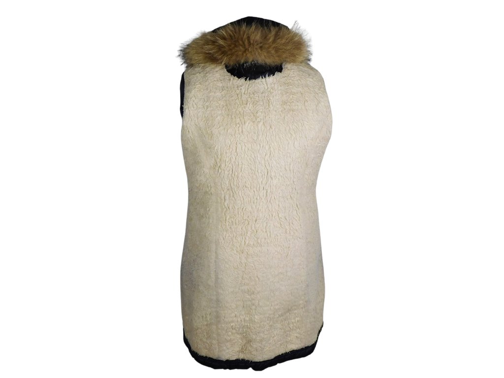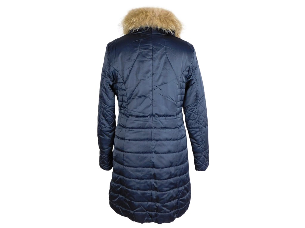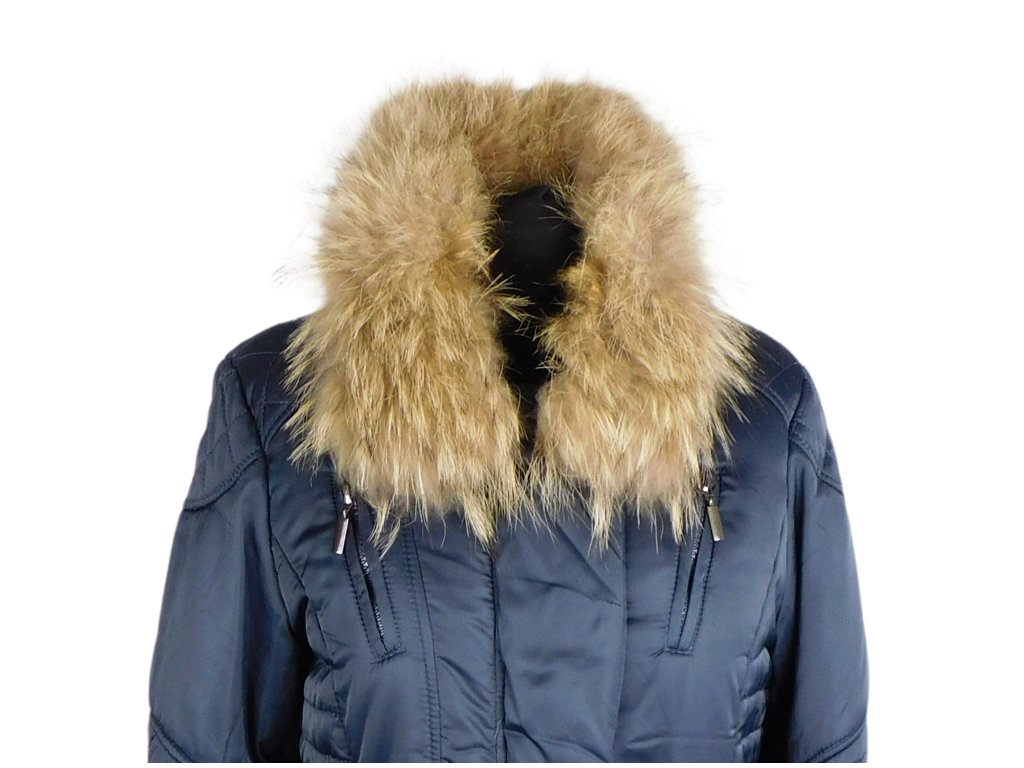 Dámský prošívaný modrý kabát s pravou kožešinou L*