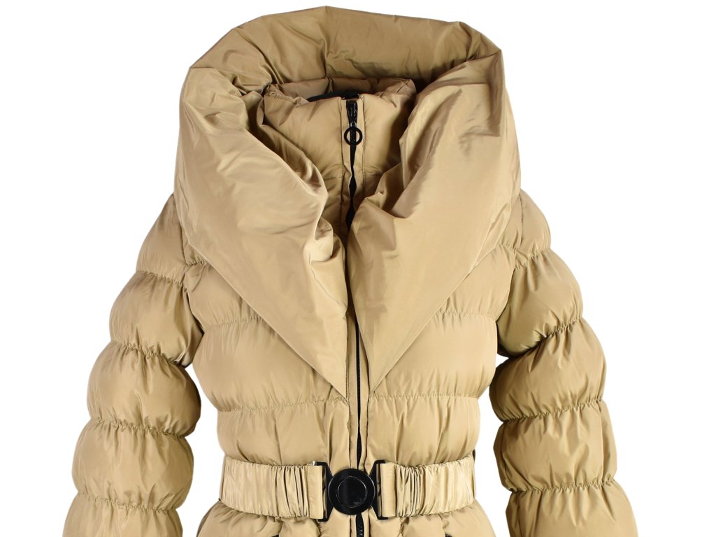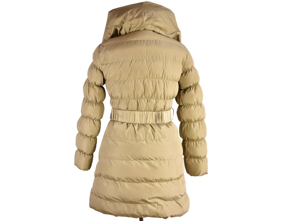 Dámský prošívaný pískový kabát s páskem a límcem XS