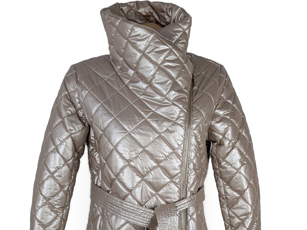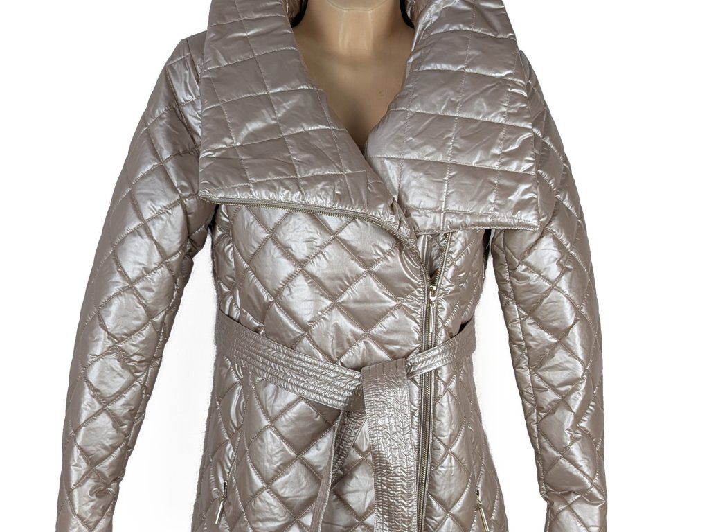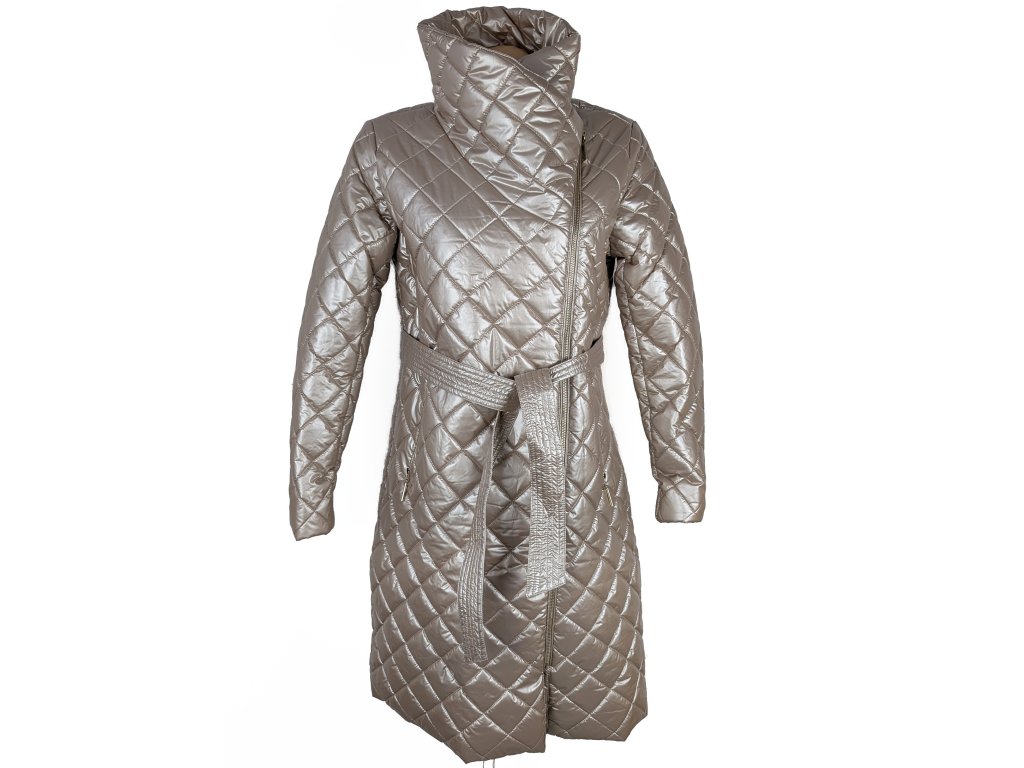 Dámský prošívaný zlatý kabát s páskem MOHITO 42