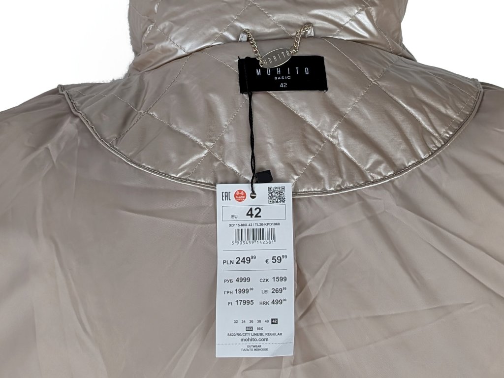 Dámský prošívaný zlatá kabát s páskem MOHITO 42