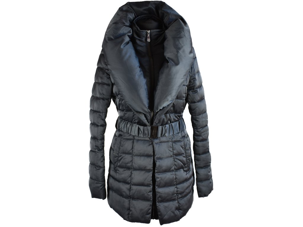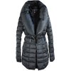 Dámský prošívaný šedý kabát s límcem a páskem MORGAN M