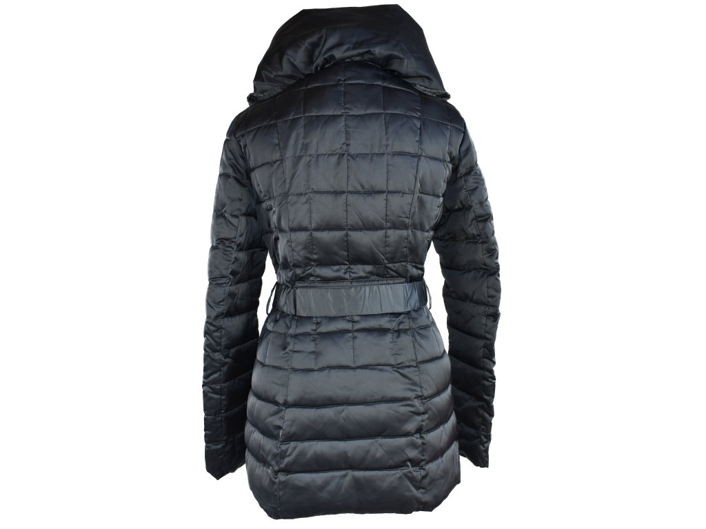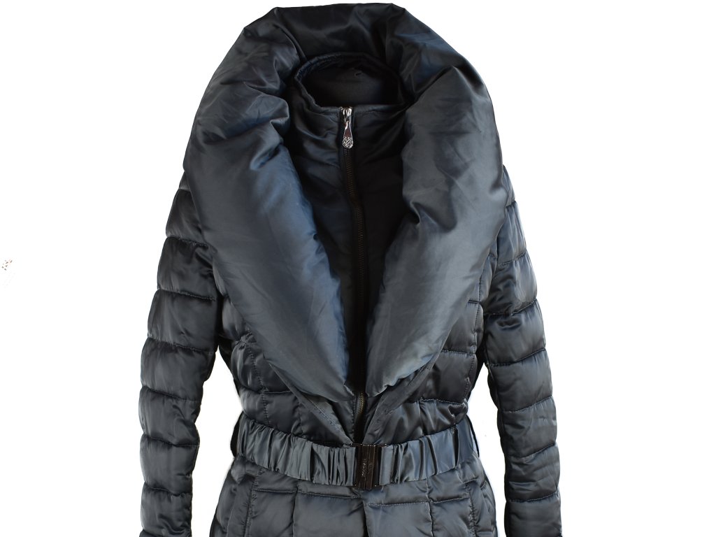 Dámský prošívaný šedý kabát s límcem a páskem MORGAN M