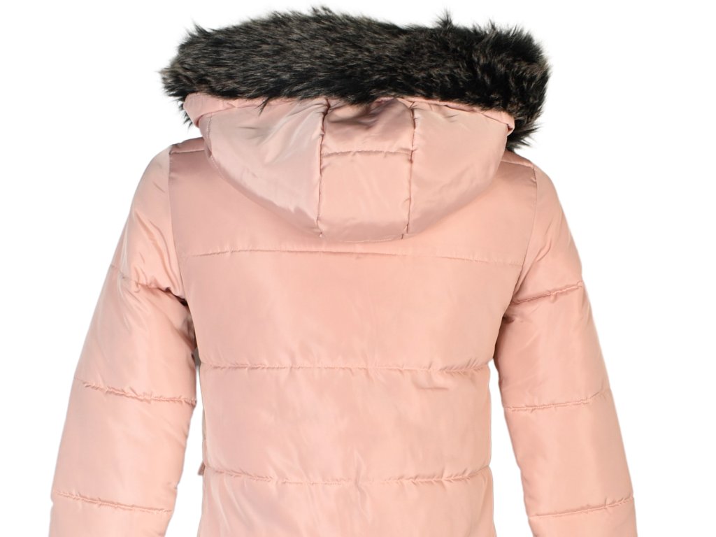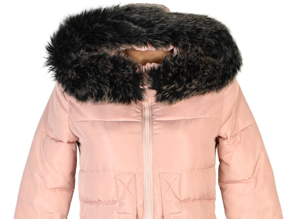 Gate, Dámský prošívaný kabát, růžový kabát, velikost XS/34, odnimatelný kožíšek
