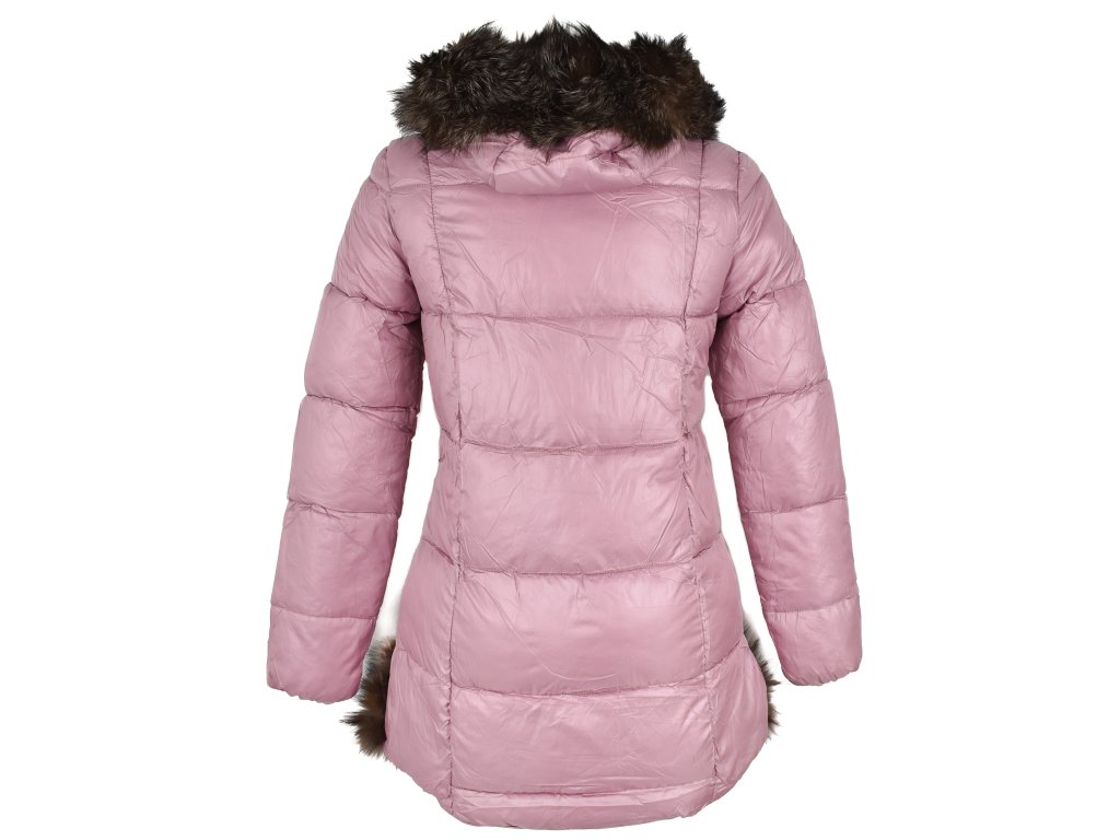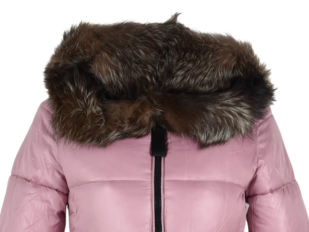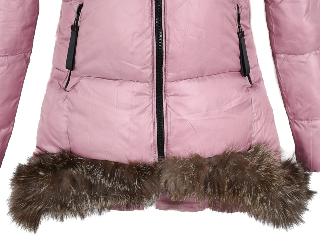 Dámský růžový prošívaný kabát s pravou kožešinou Viola S